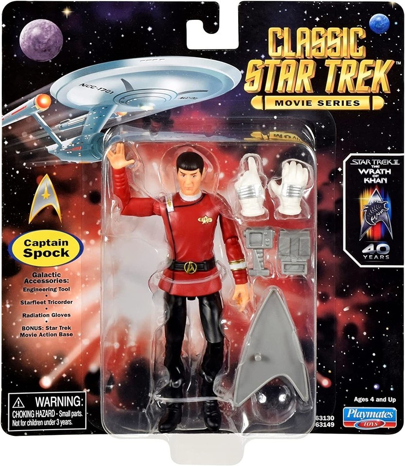 The classic line of Star Trek action figures you remember from 1990s are back with a modern touch. The Star Trek Classic Star Trek II: The Wrath of Khan Captain Spock 5-Inch Action Figure is showcased in nostalgic, retro-styled blister card packaging reminiscent of the 1990s look.