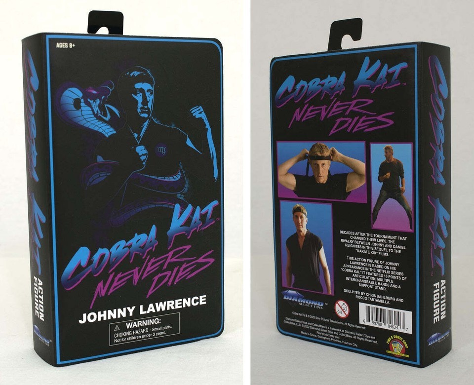 This fully articulated 7" figure of Johnny Lawrence depicts him as he appears in the fan-favorite Karate Kid sequel series, and includes a display base.