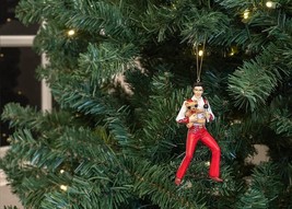 This Elvis ornament from Kurt Adler is a festive addition to your holiday decor or Christmas tree. Elvis is wearing a red and white suit and he is carrying a teddy bear wearing sunglasses. Officially-licensed Elvis ornament. About 4" Tall.