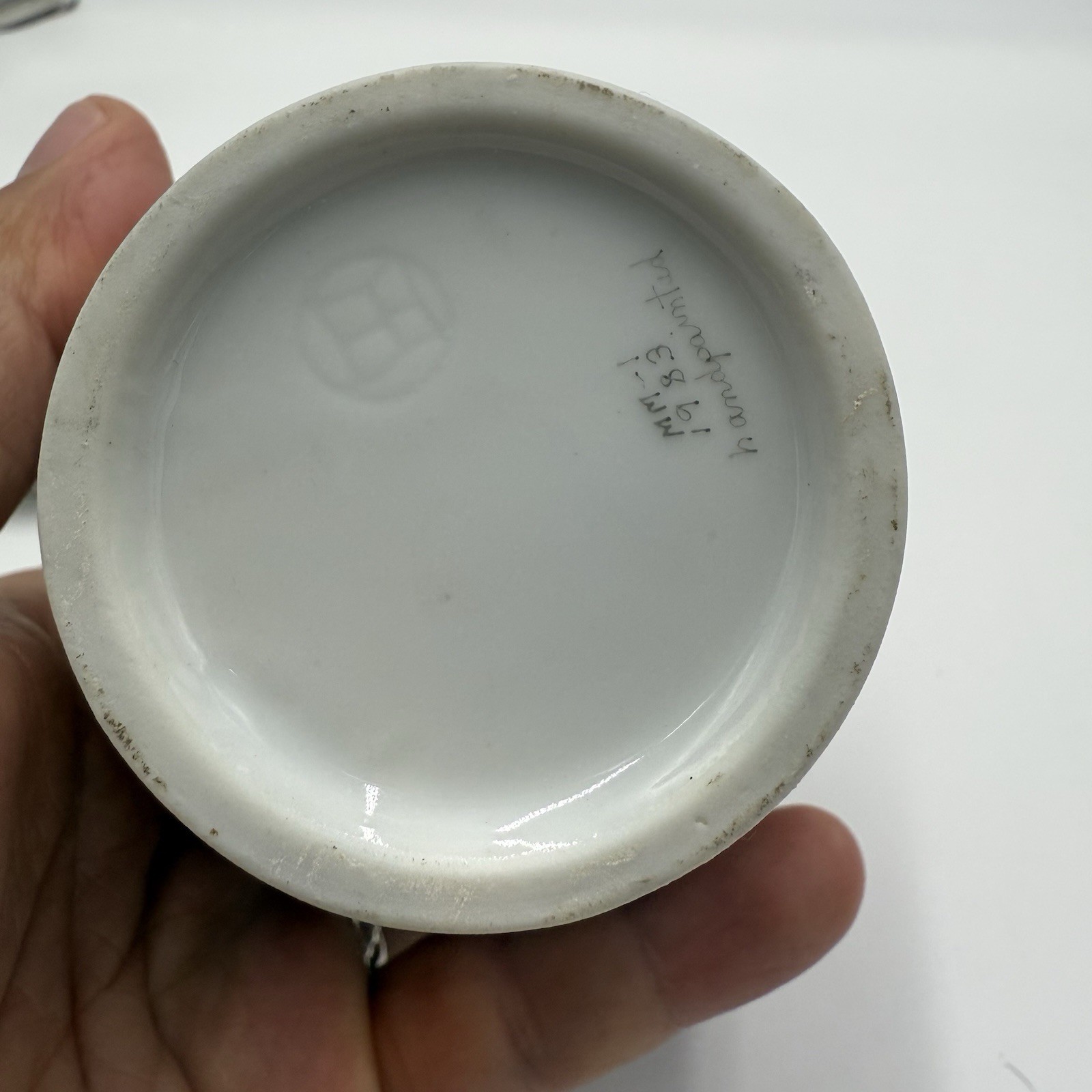 This vintage porcelain ginger jar hand painted with daisies by Marianne Morton in 1983 is a unique and charming decorative collectible. The brand Ginger adds a touch of nostalgia to the piece, while the hand-painted daisies make it a one-of-a-kind item for any collector. The craftsmanship and attention to detail in this piece make it a lovely addition to any home decor.