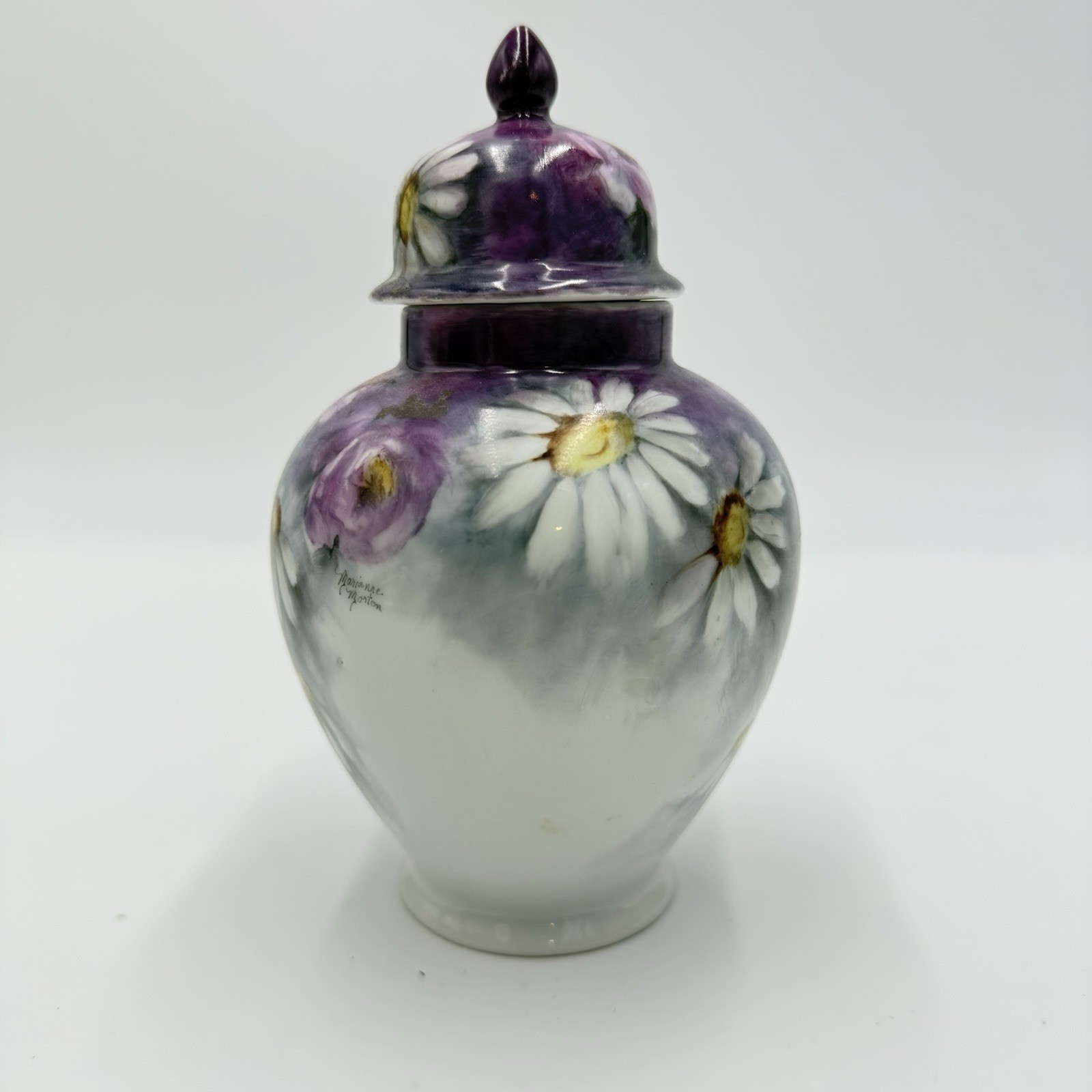 Vintage Porcelain Ginger Jar Hand Painted Signed Daisies By Marianne Morton 1983