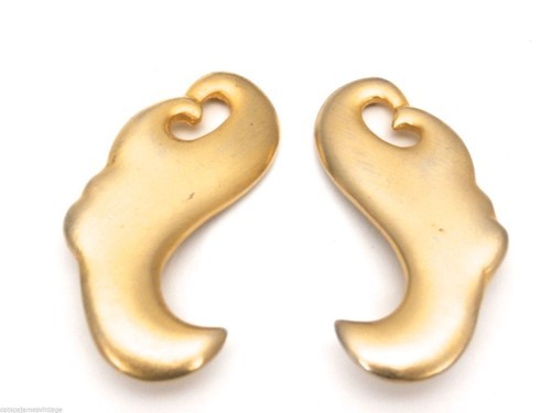 VTG 90s Kenneth Jay Lane KJL Gold Matte Abstract Clip Back Earrings Signed