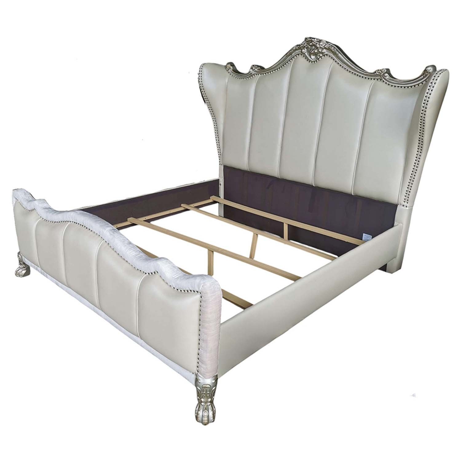 Dresden II King Bed, Pearl White Faux Leather & Gold Patina Finish