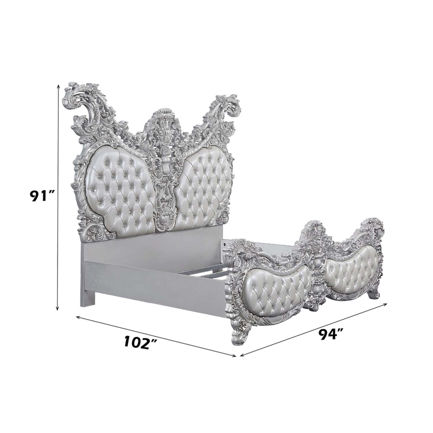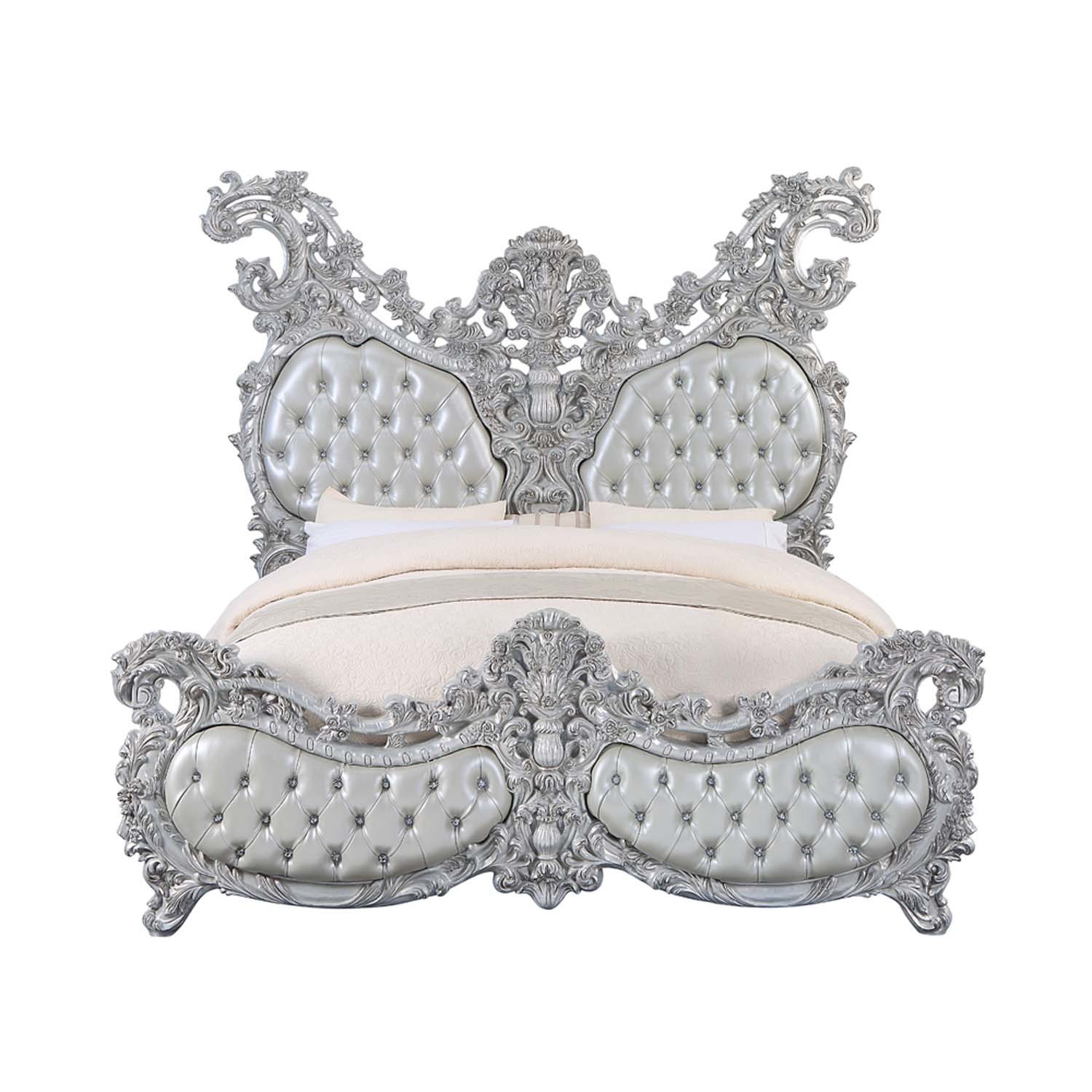 Valkyrie King Bed, Faux Leather & Antique Platinum Finish