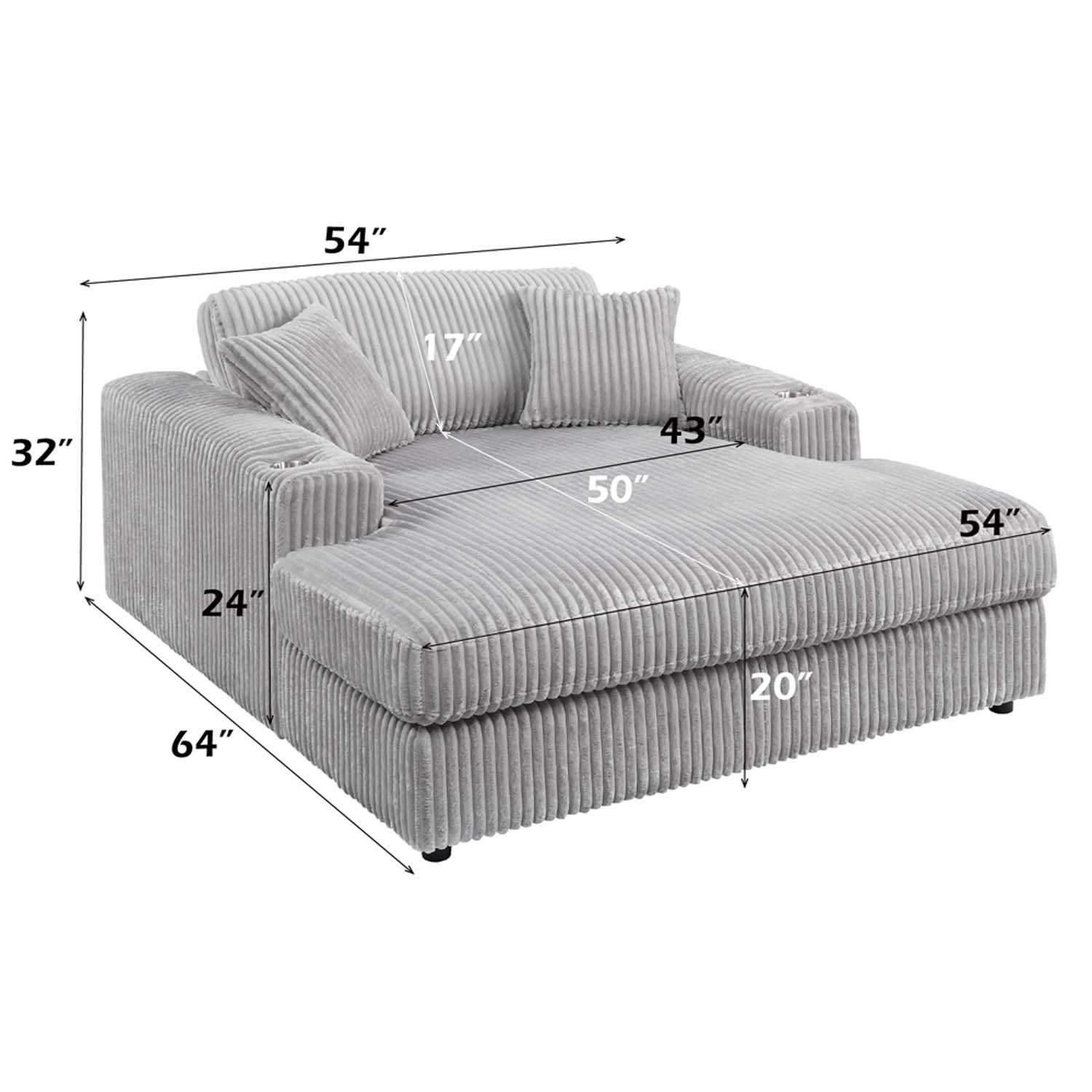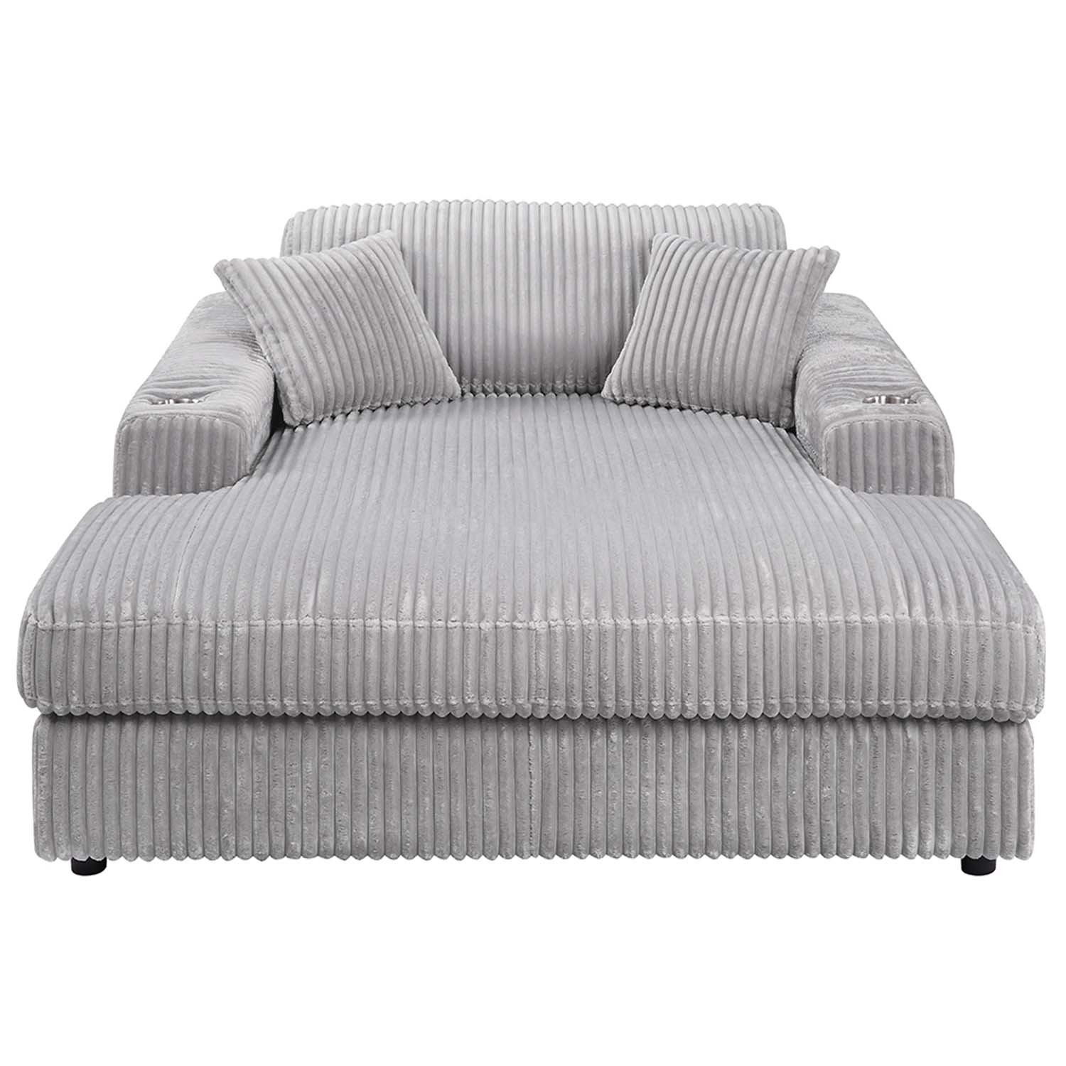 Hilde Chaise w/2 Pillows, Light Gray Corduroy