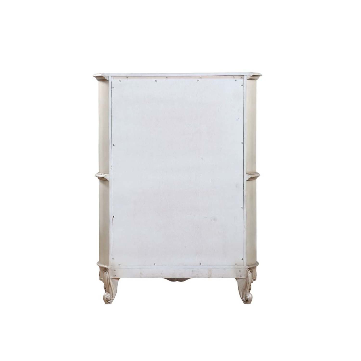 The Gorsedd chest is exclusively designed and filled with romantic spirit. Expertly detailed, the chest is crafted with romantic elements combining Queen Anne legs and ornate floral accents in matching golden ivory finish. Add glamorous French provincial charm with this uniquely designed collection that will make a statement in any bedroom