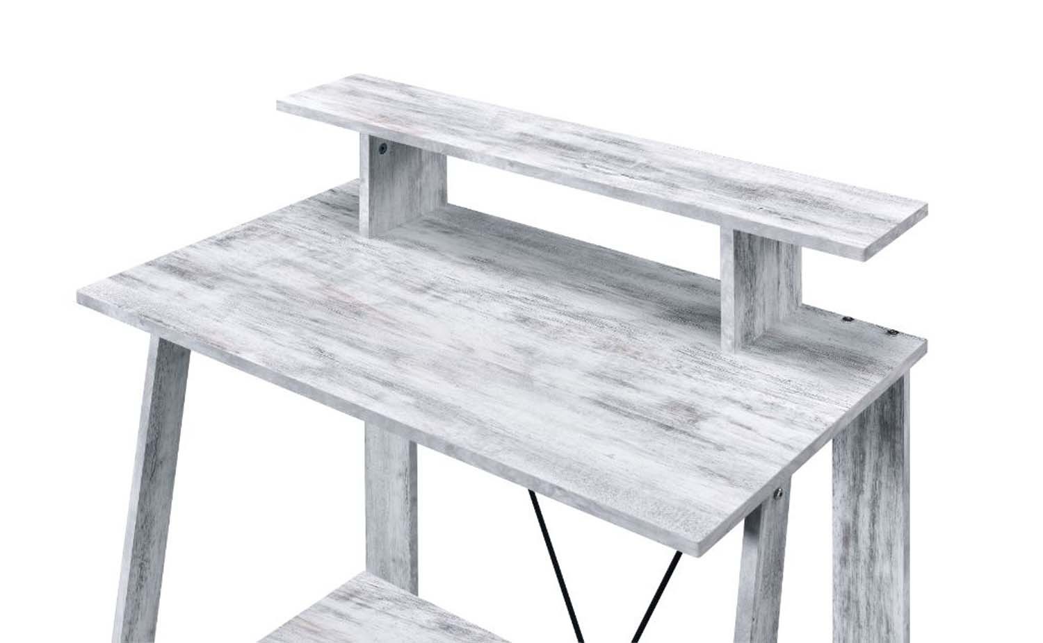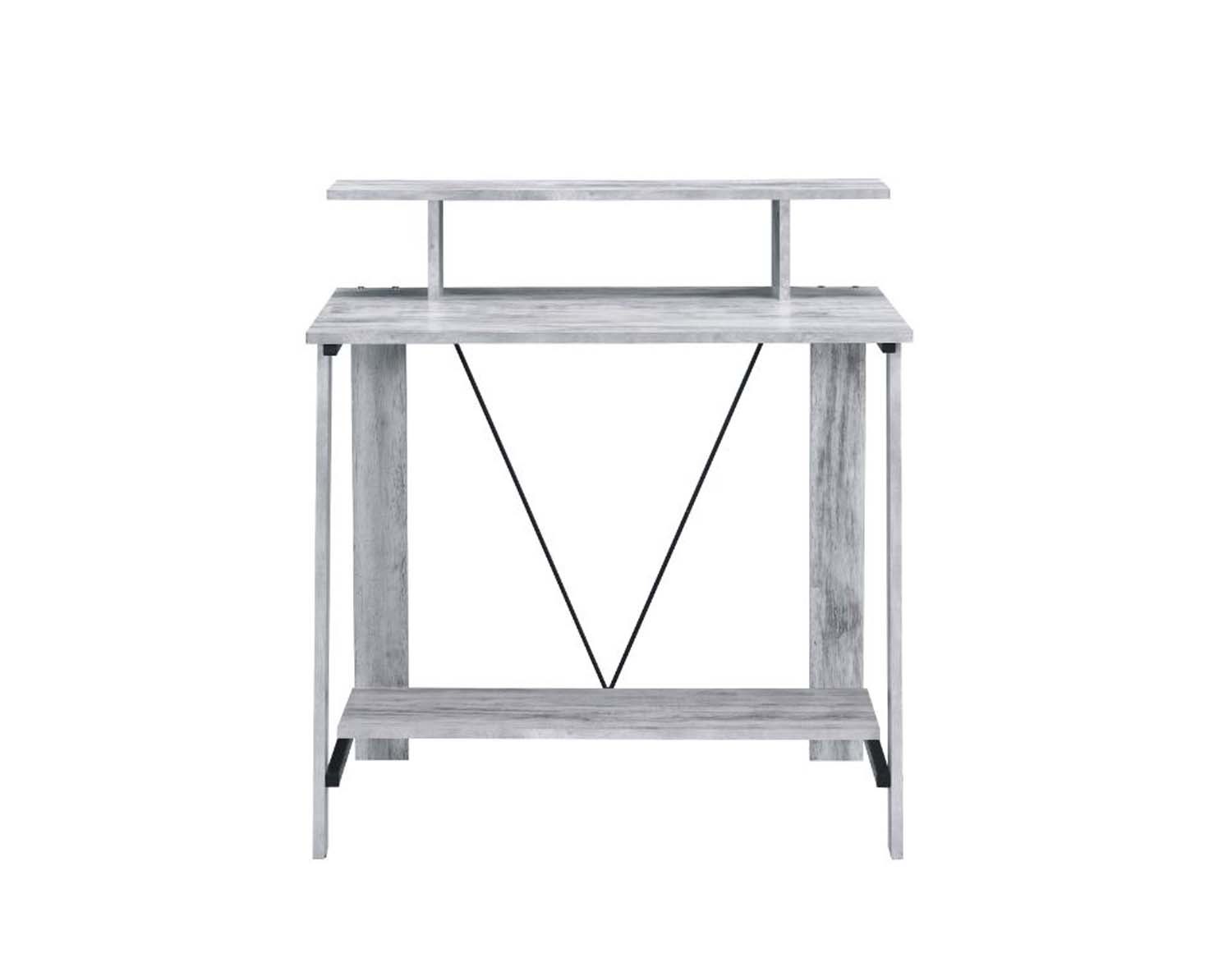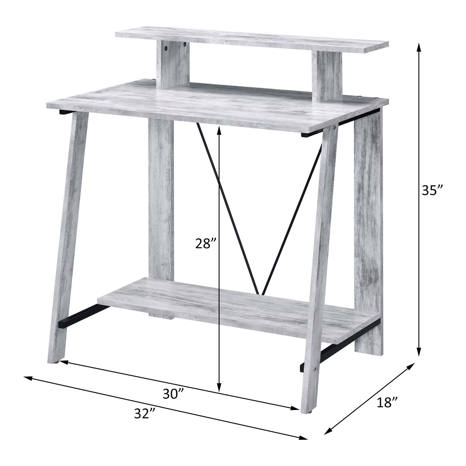 Features: Rectangular Writing Desk Desk with Top and Bottom Shelves Metal V-Shaped Backing Thickness for All Panels: 15mm Desk Top Size: 32" x 18" Set Includes: One (1) Writing Desk