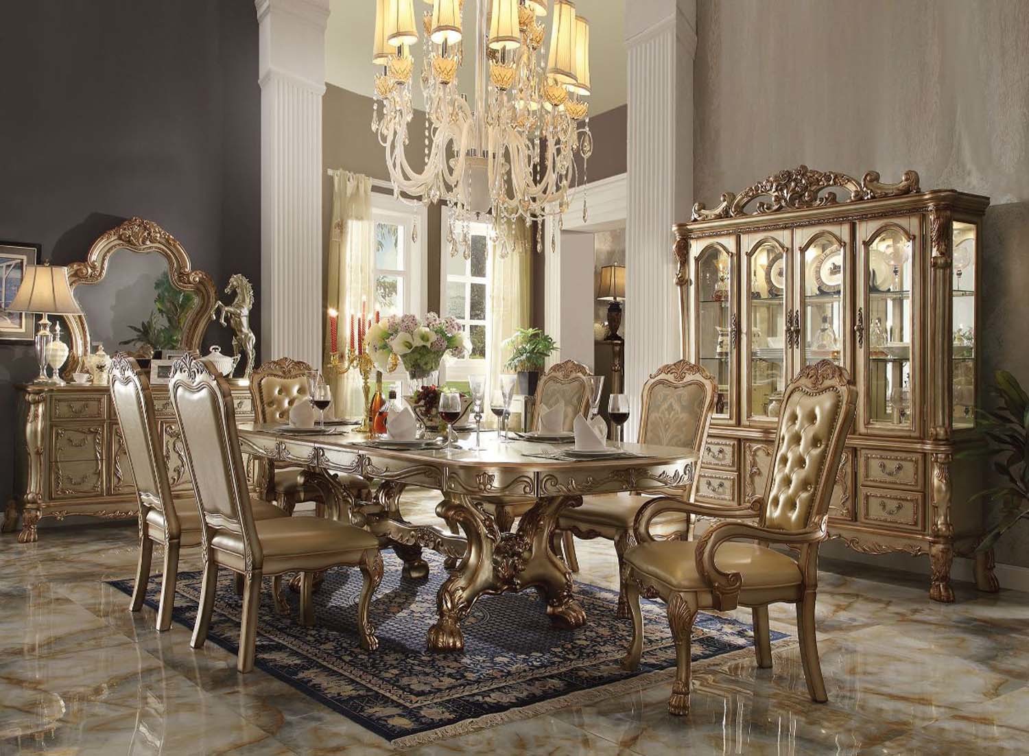 Dresden Dining Table w/2 Leaves, Gold Patina & Bone Finish