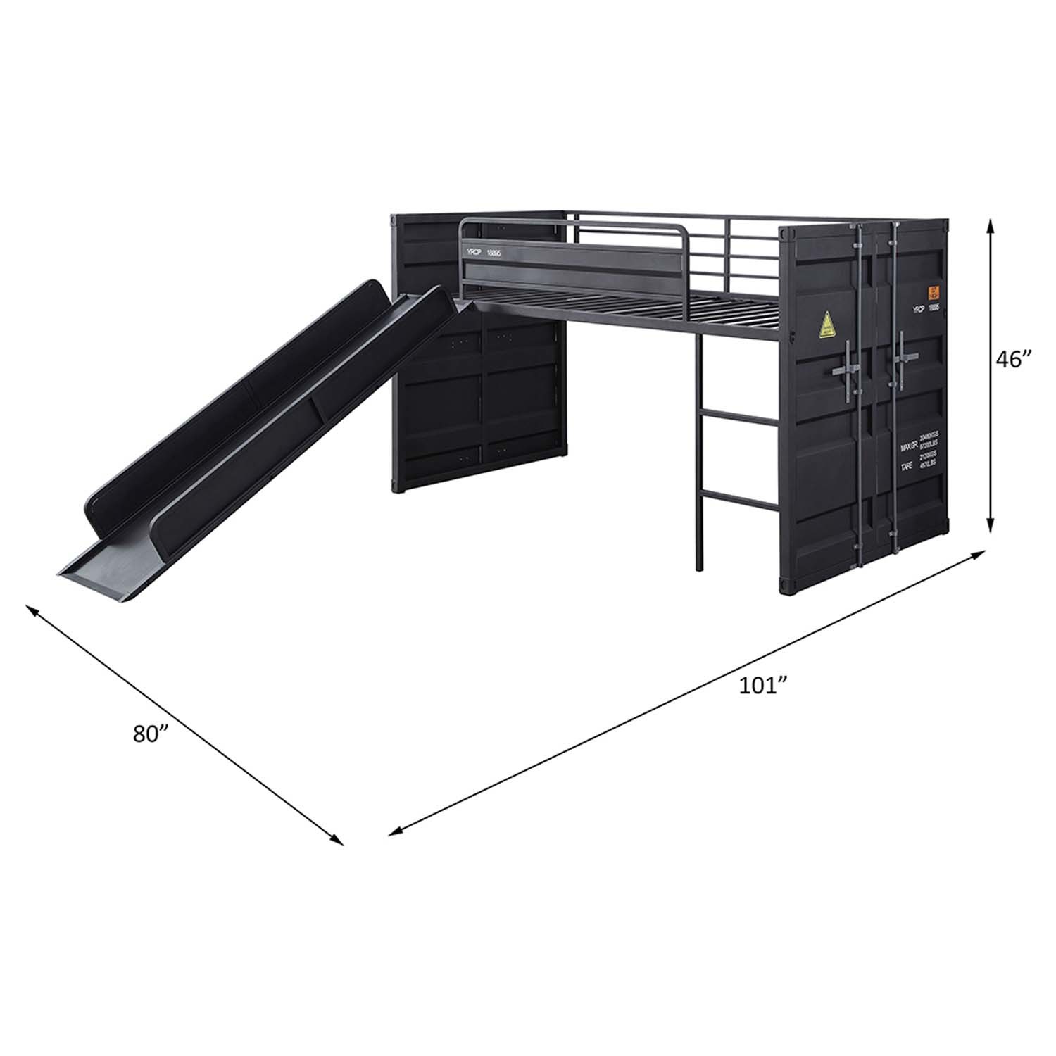 Cargo Twin Loft Bed w/Slide, Gunmetal Finish