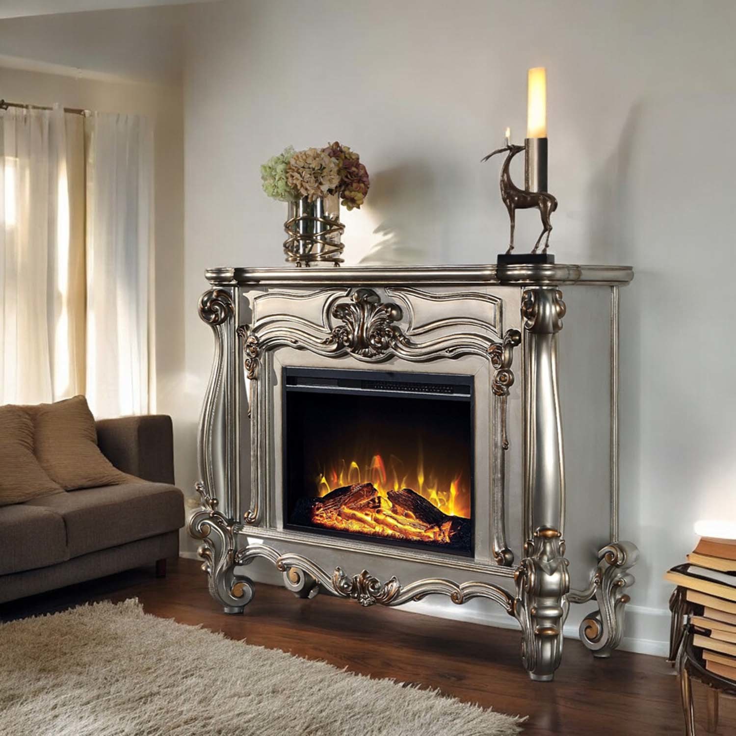 Gather the family around the Versailles fireplace in antique platinum. Traditional details such as scroll legs and carvings make this piece a masterpiece. It comes equipped with fire safety technology that continuously monitors the temperature of the plug and will turn off the fireplace if unsafe conditions arise. The flame effect can be operated with or without heat, providing the ambiance of a gentle rolling fire all year long.
