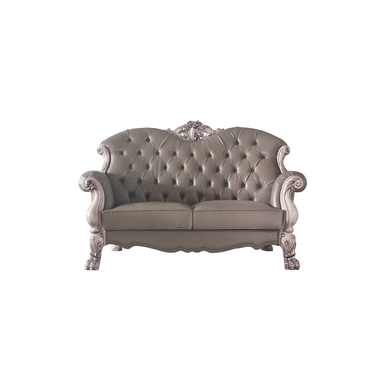 Dresden 71" Loveseat w/3 Pillows, Faux Leather & Vintage Bone White Finish