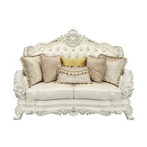 Adara 70" Loveseat w/5 Pillows, Pearl White Faux Leather