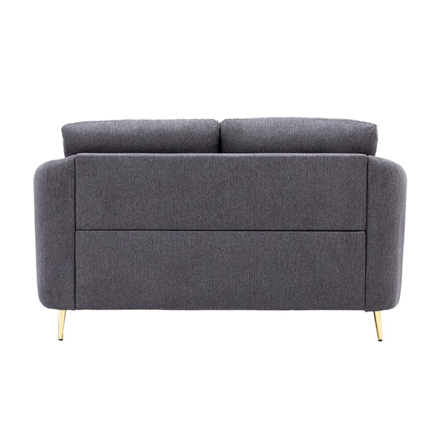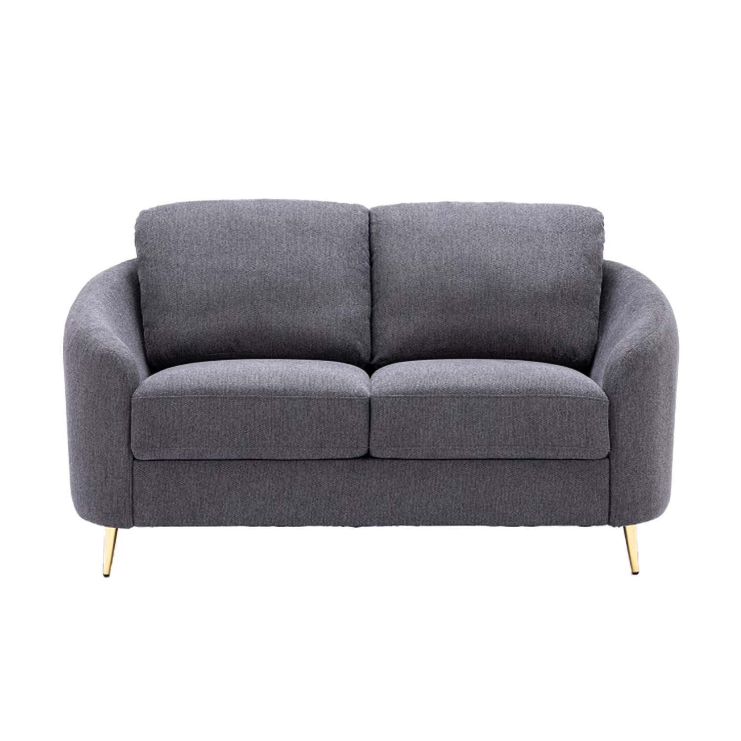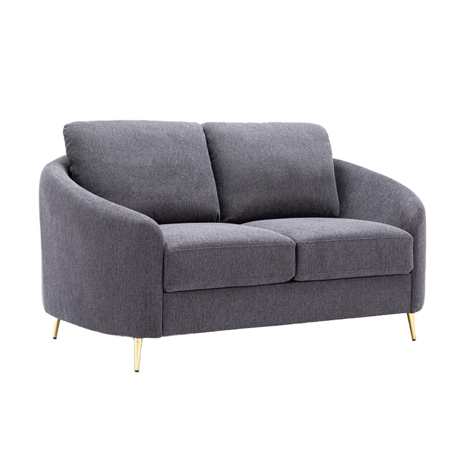 Slightly rounded and slopped armrests are used to create a modern silhouette on the Yuina loveseat. The softness of the gray linen upholstery counterbalances the gold metal legs for a clean stylish look, also making it easy to style with its neutral tones. Plush seat cushions make for a lush seating experience for you and your guests. The pinewood inner frame is resilient and will last years of use.