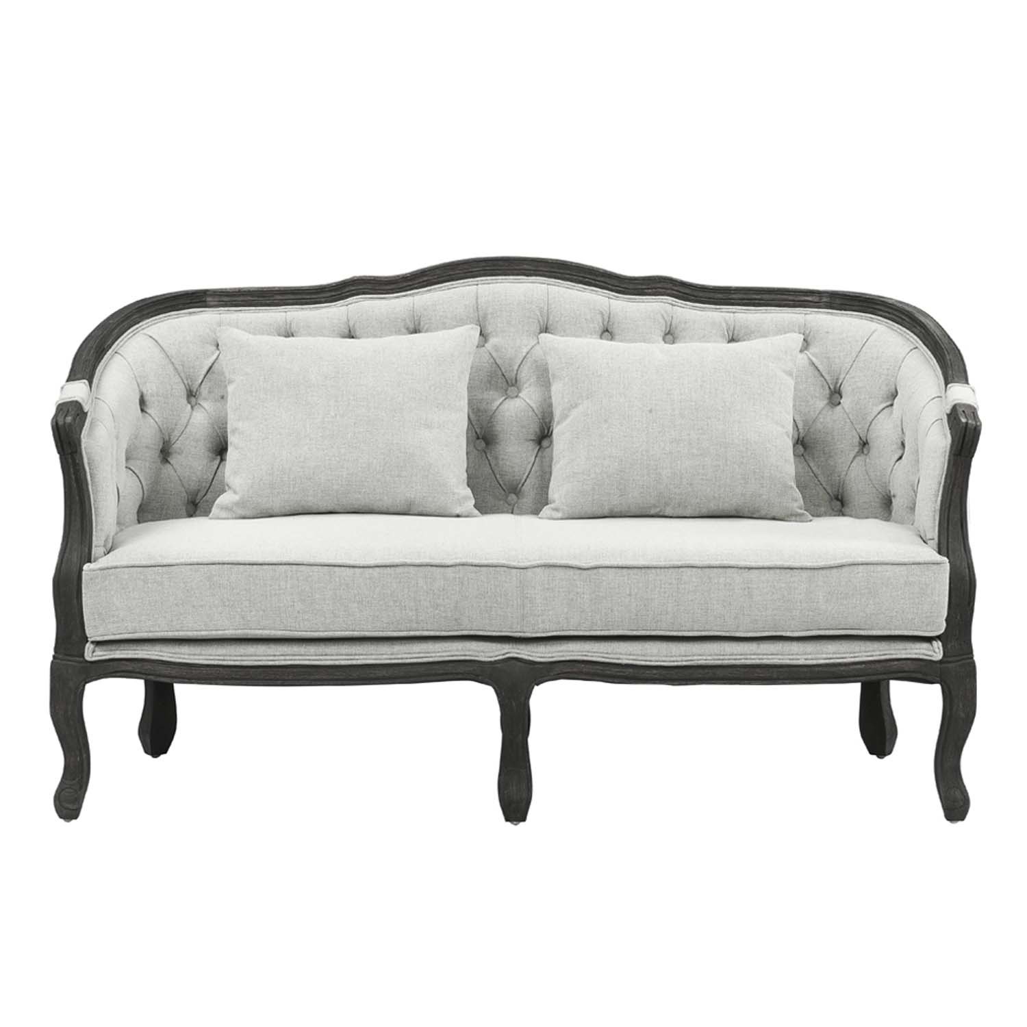 Samael 64" Loveseat w/2 Pillows, Gray Linen & Dark Brown Finish
