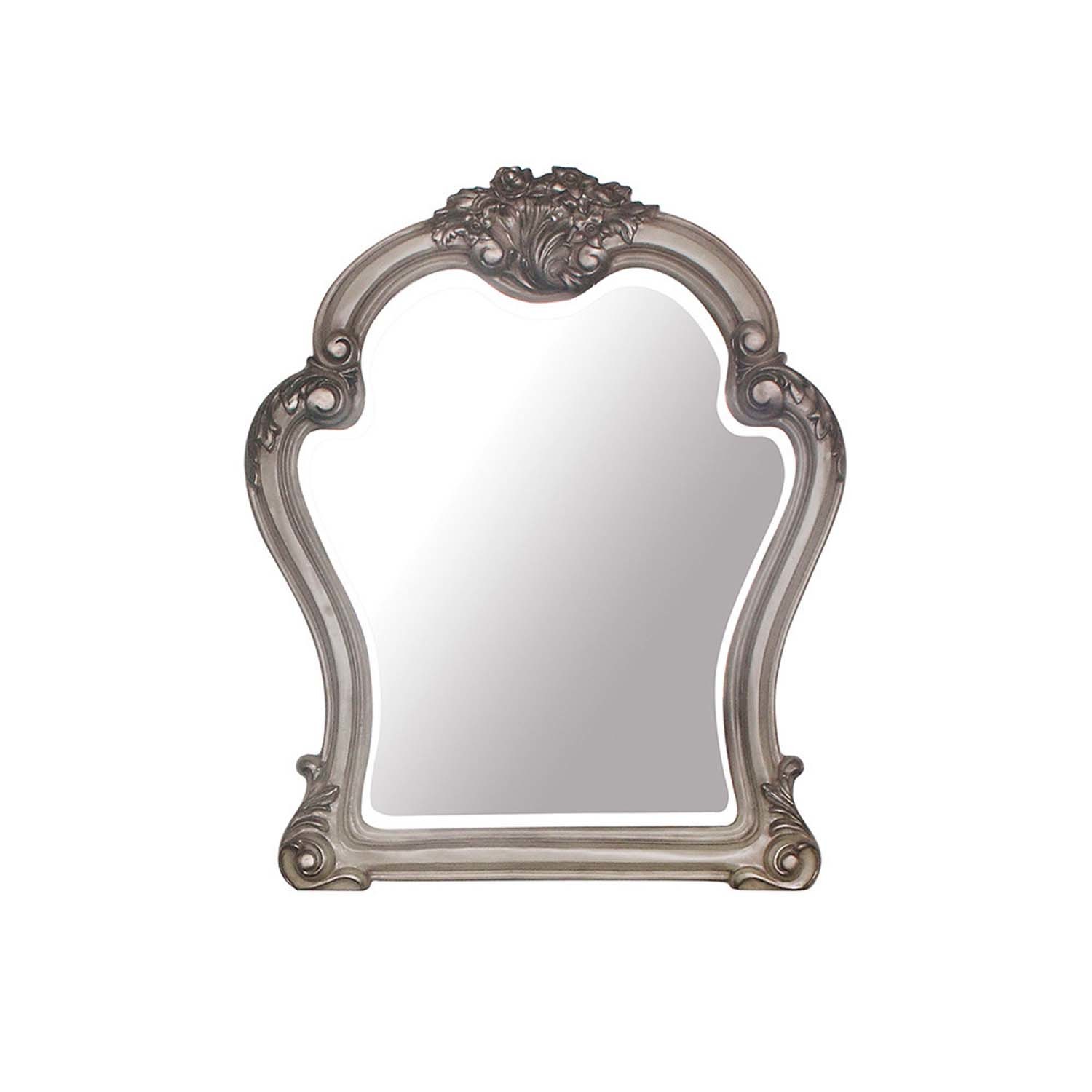 Features: Mirror with Beveled Edge Shape: Arched w/Raised Scrolled Trim (Poly-Resin Moldings) Versatile piece that blends function with style A budget-friendly way to upgrade interior aesthetics Crafted with quality materials for lasting use Set Includes: One (1) Accent Mirror