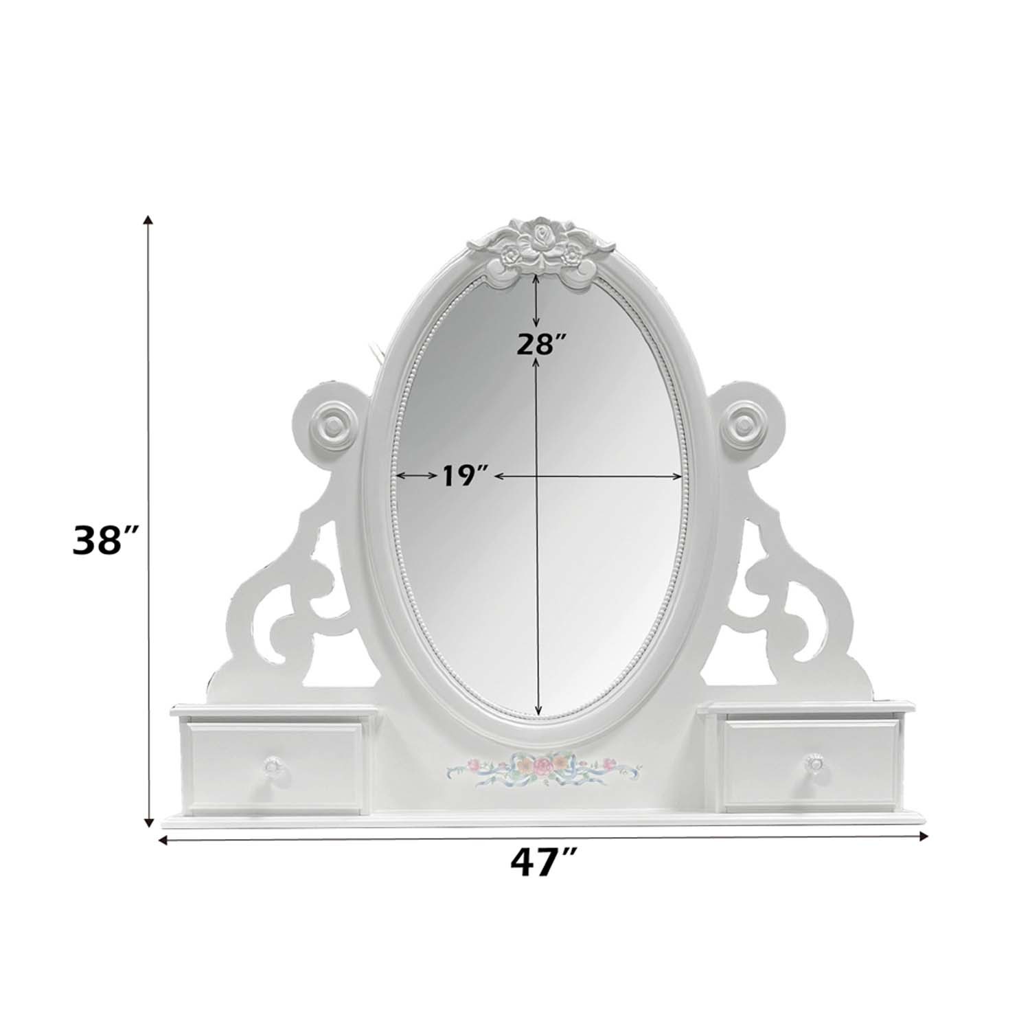 Flora 47"x38" Mirror w/Jewlery, White Finish