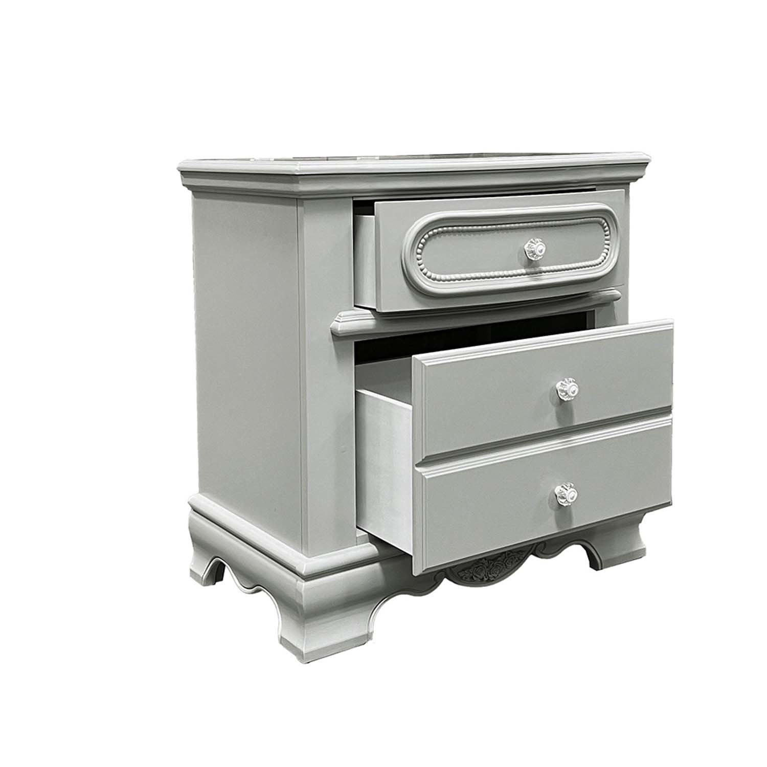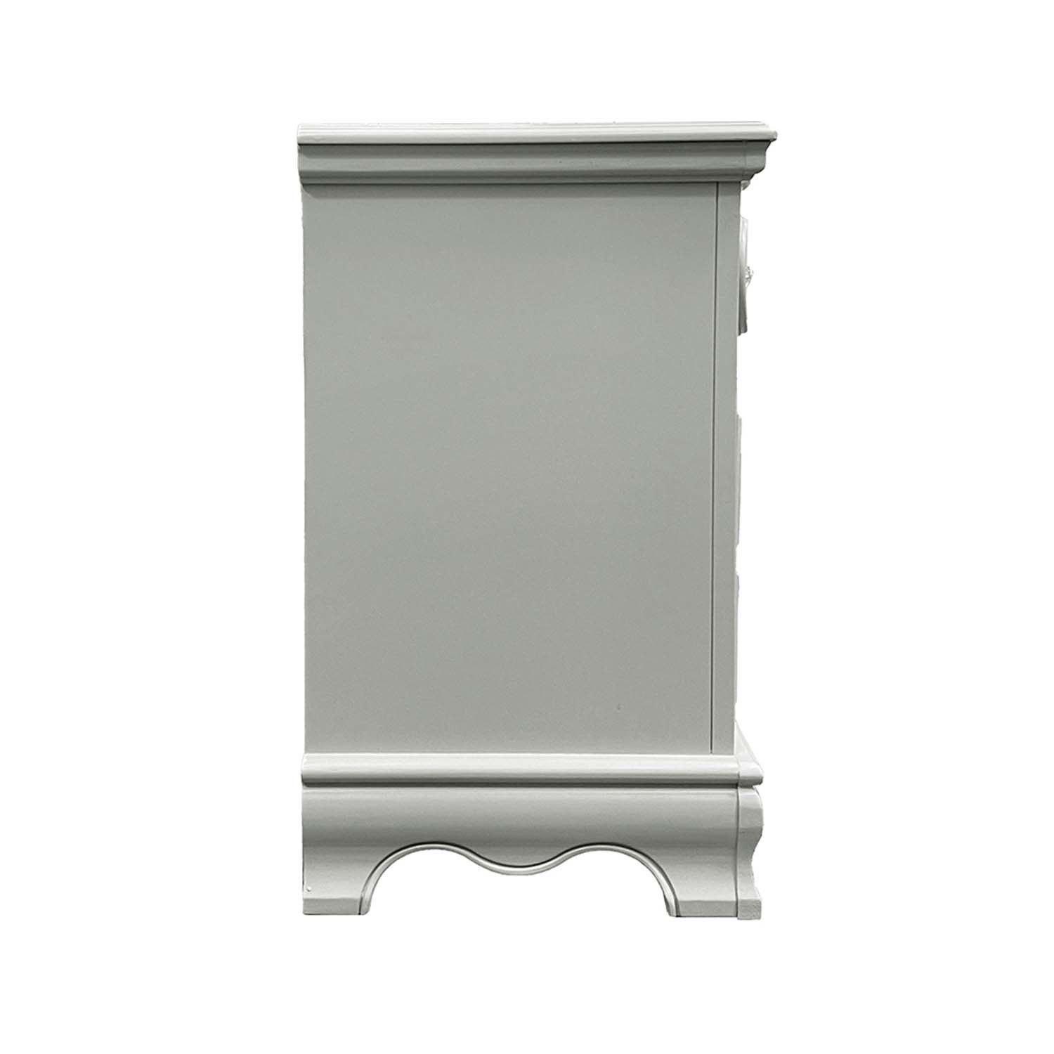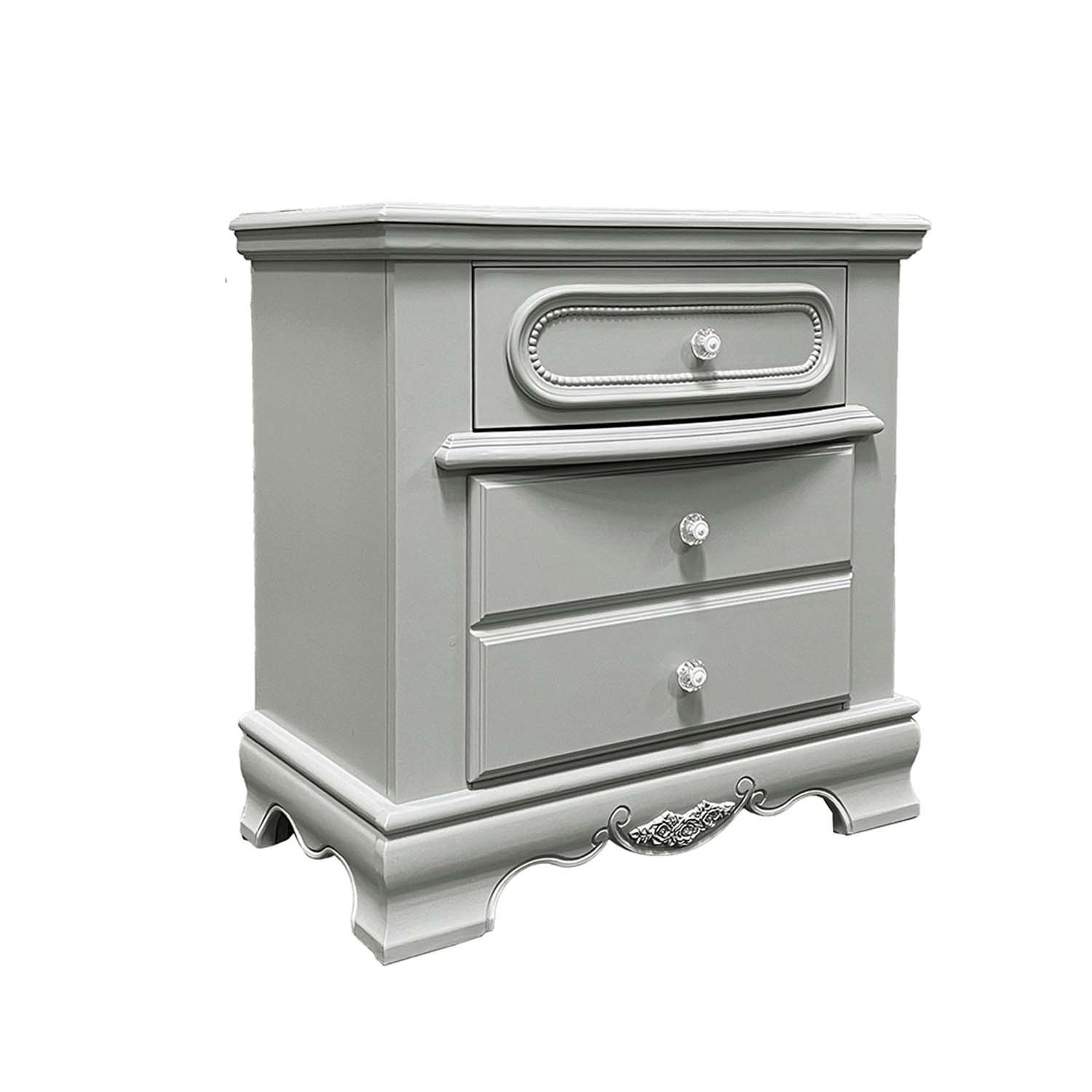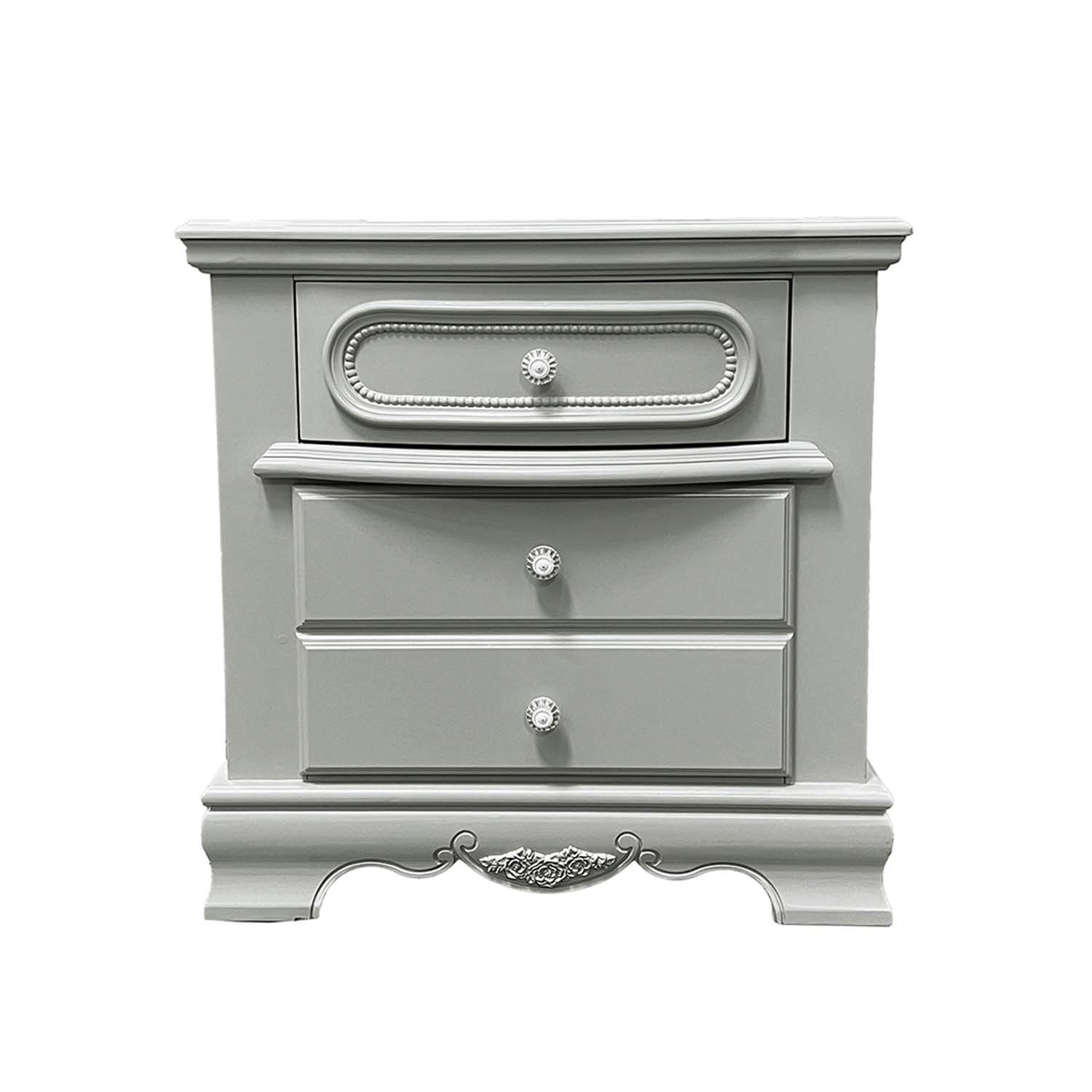 Fulfill your little girl's dream of being a princess by creating a royal retreat with the Flora nightstand. This frilly nightstand features a scalloped base with a beautiful floral motif detail for an added girly touch. Three drawers ensure there is enough storage for all their tiaras and accessories. The gray finish is perfect for a modern princess. This nightstand is sure to make your little one beam with happiness.