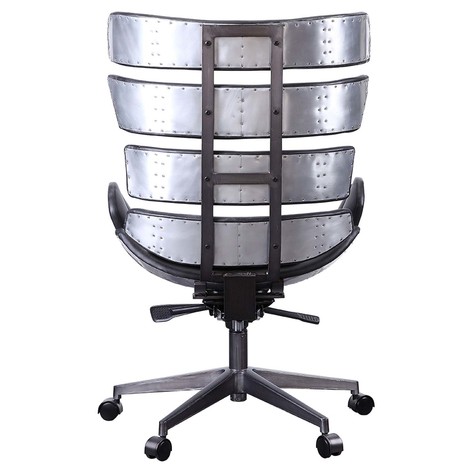 Features: Executive Armless Office Chair (High Back) Seat: Swivel (360 Degrees), Adjustable Height (Pneumatic Lift), Bucket Shape Padded Seat Back: Top Grain Leather Cushion, Patchwork Aluminum Outside, Horizontal Panels, Inner Frame: Ply Armless Backrest: WingBack, 5-Star Base w/Casters: Metal Base, Matte Iron Set Includes: One (1) Office Chair