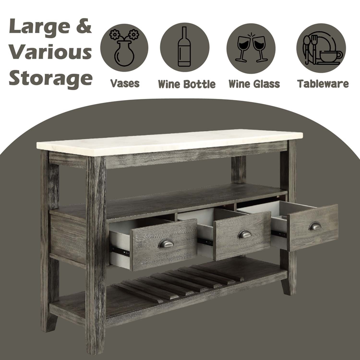 Merel 54" Server, White Marble Top & Gray Oak Finish