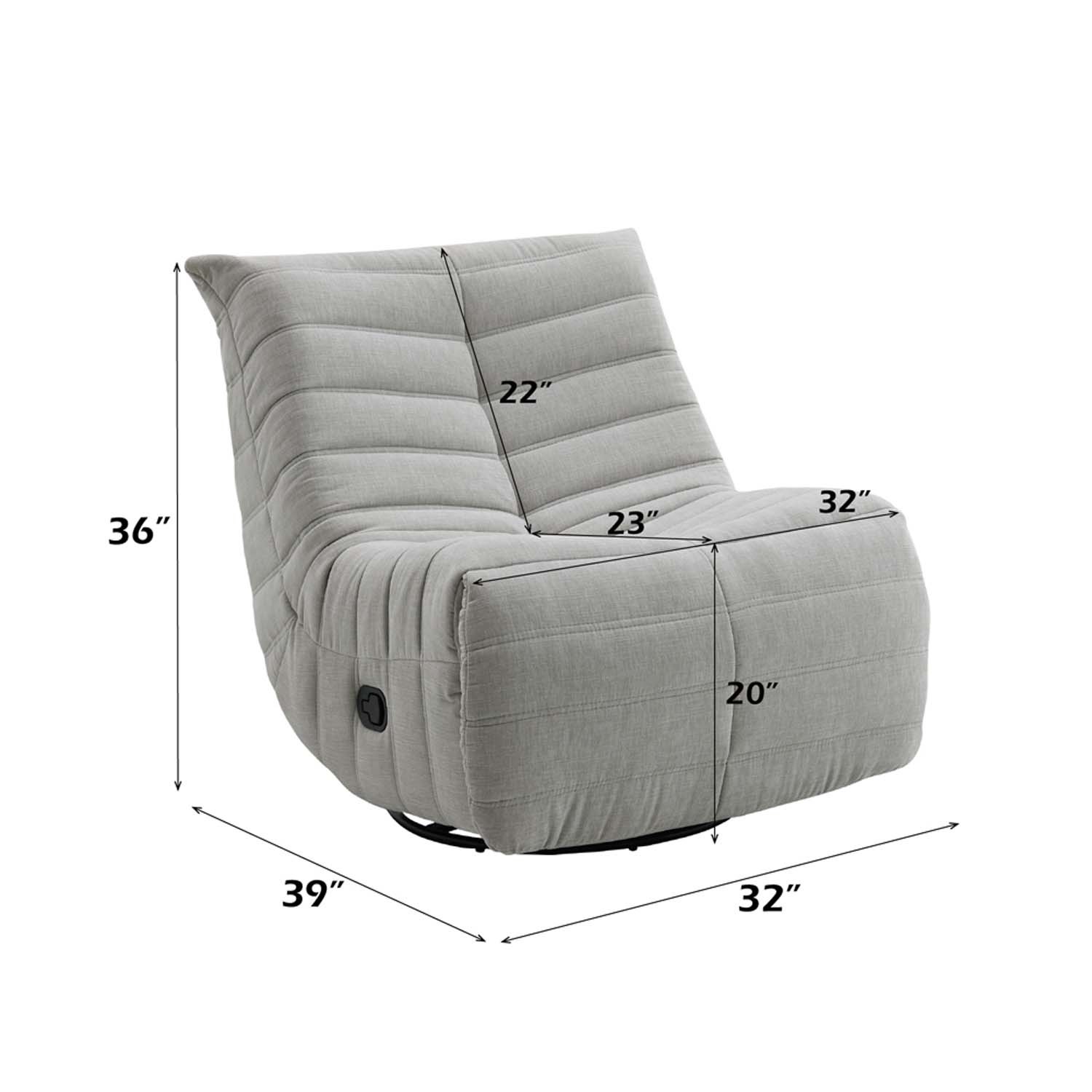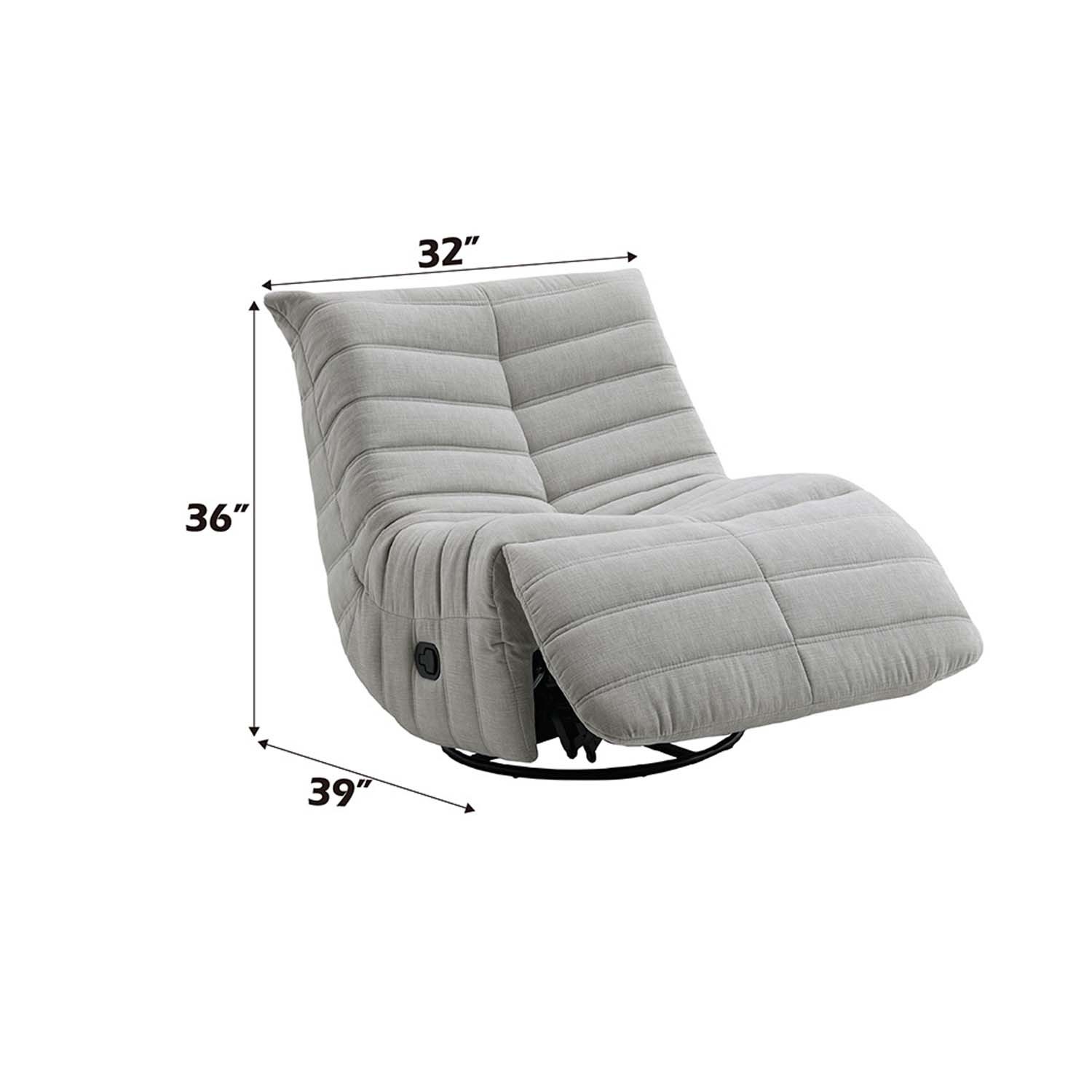 Features: Motion Glider Recliner 360 Degree Swivel Padded Seat and Back Metal Frame Designed for comfort and everyday functionality. Set Includes: One (1) Recliner