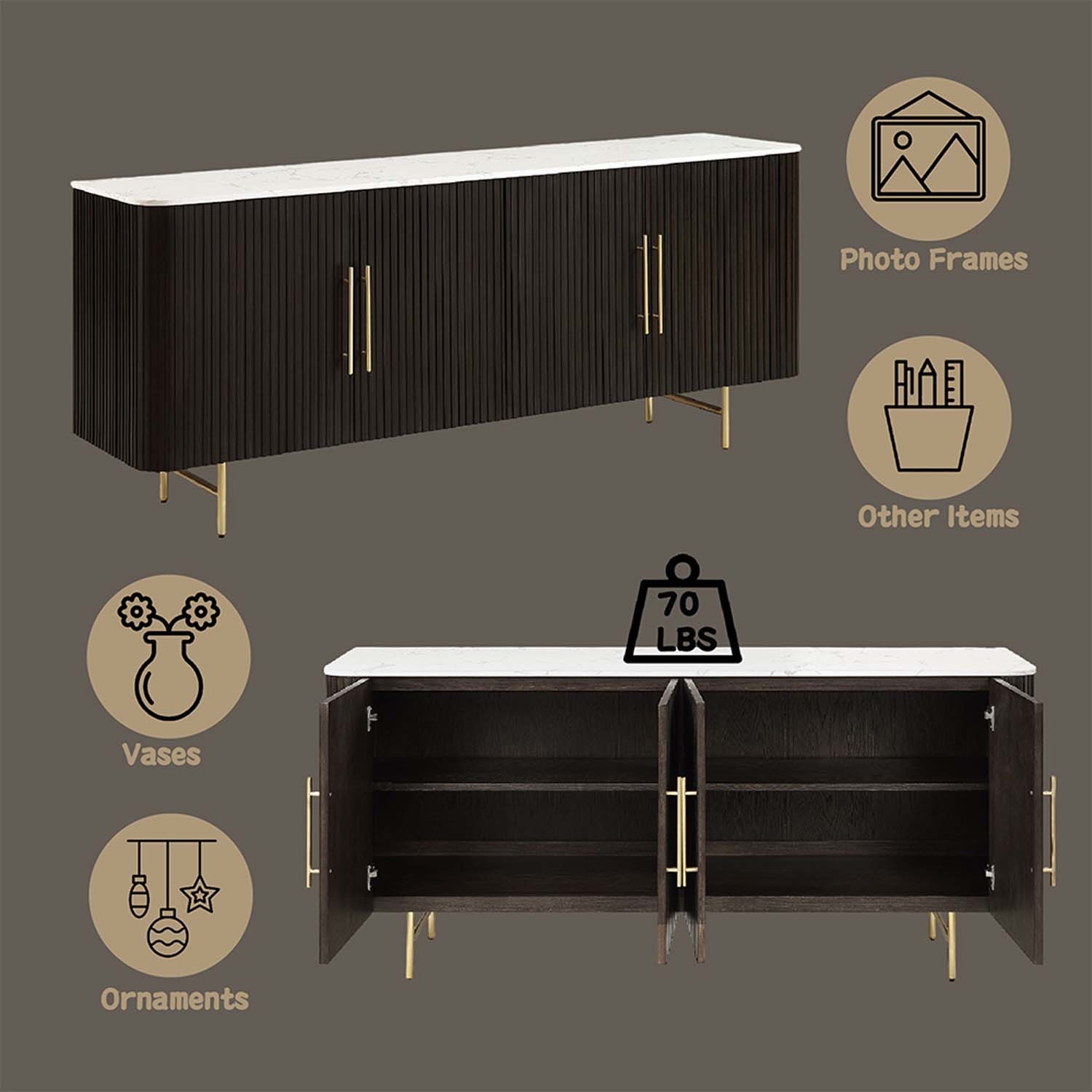 Features: 4 Doors Storage(w/2 Shelves) Marble Top Metal Legs Built with sturdy, durable materials designed to last for years Designed for comfort and everyday functionality. Set Includes: One (1) Servers
