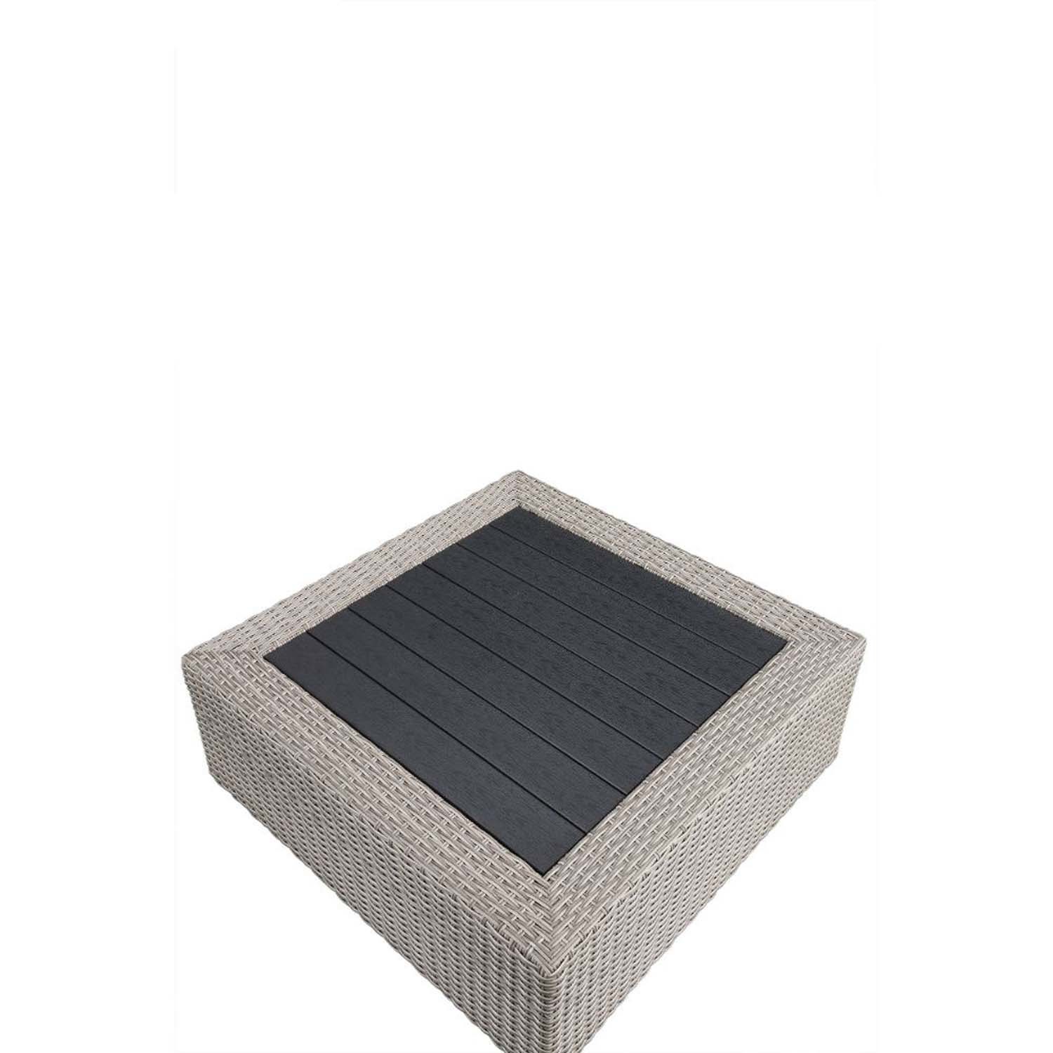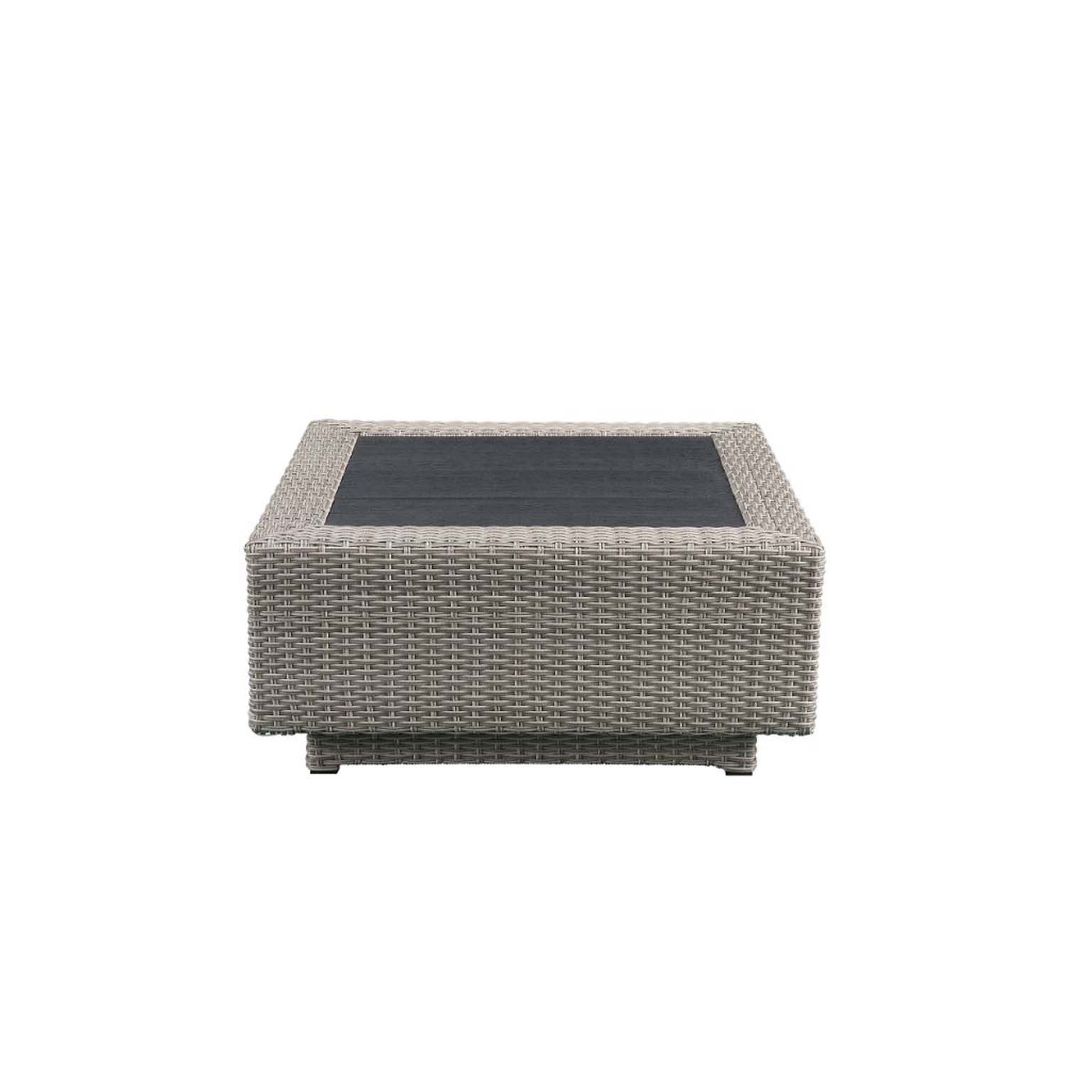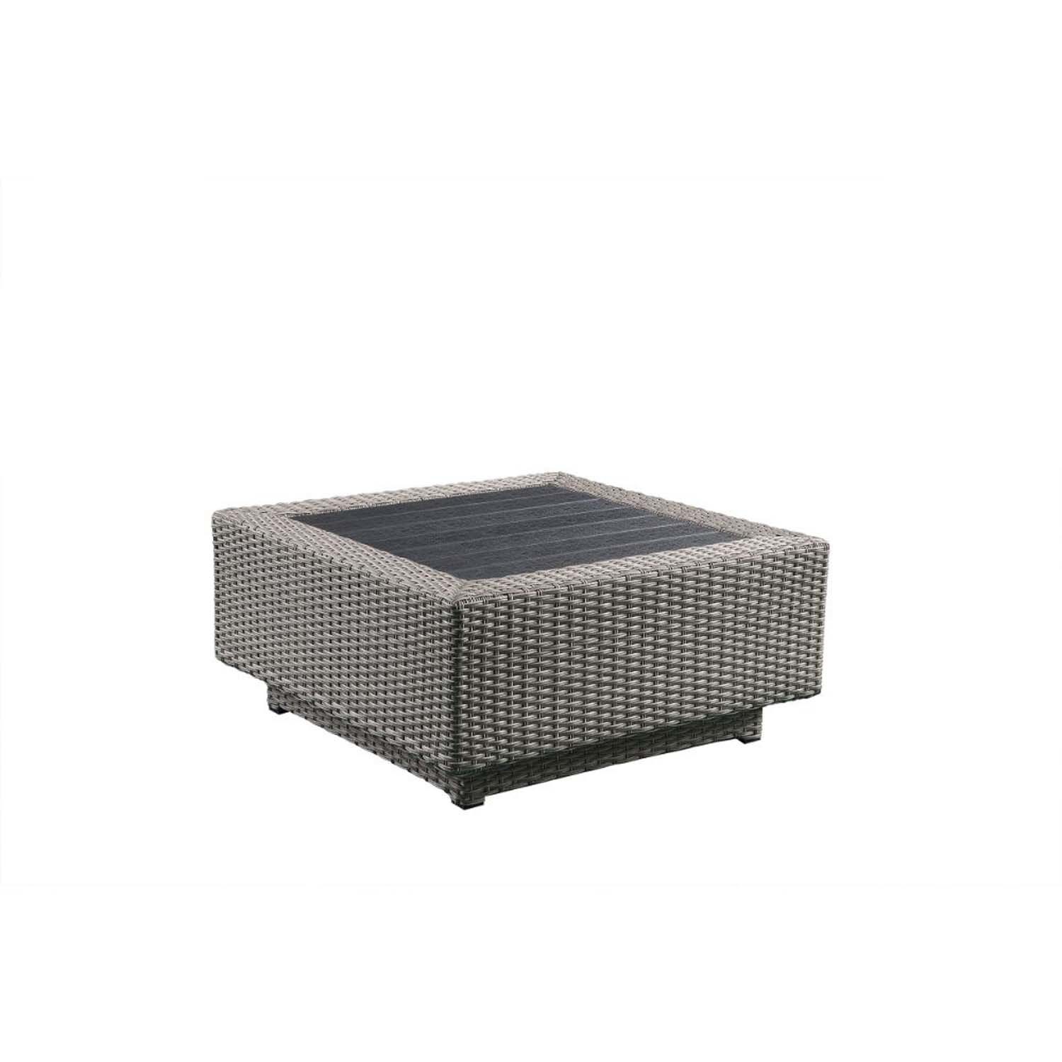 Features: L Shape Sectional and Cocktail Ottoman Reversible Armless Chair Loose Back Seat Cushion Construction: Wicker Aluminum Frame, Foam Filling Cushion Sectional Includes: Right Facing LoveSeat with Side Table, Left Facing LoveSeat with Side Table, Wedge, Reversible Armless Chair, and Cocktail Table (Cocktail Side Table Plastic Slatted Top) Set Includes: One (1) Sectional Sofa