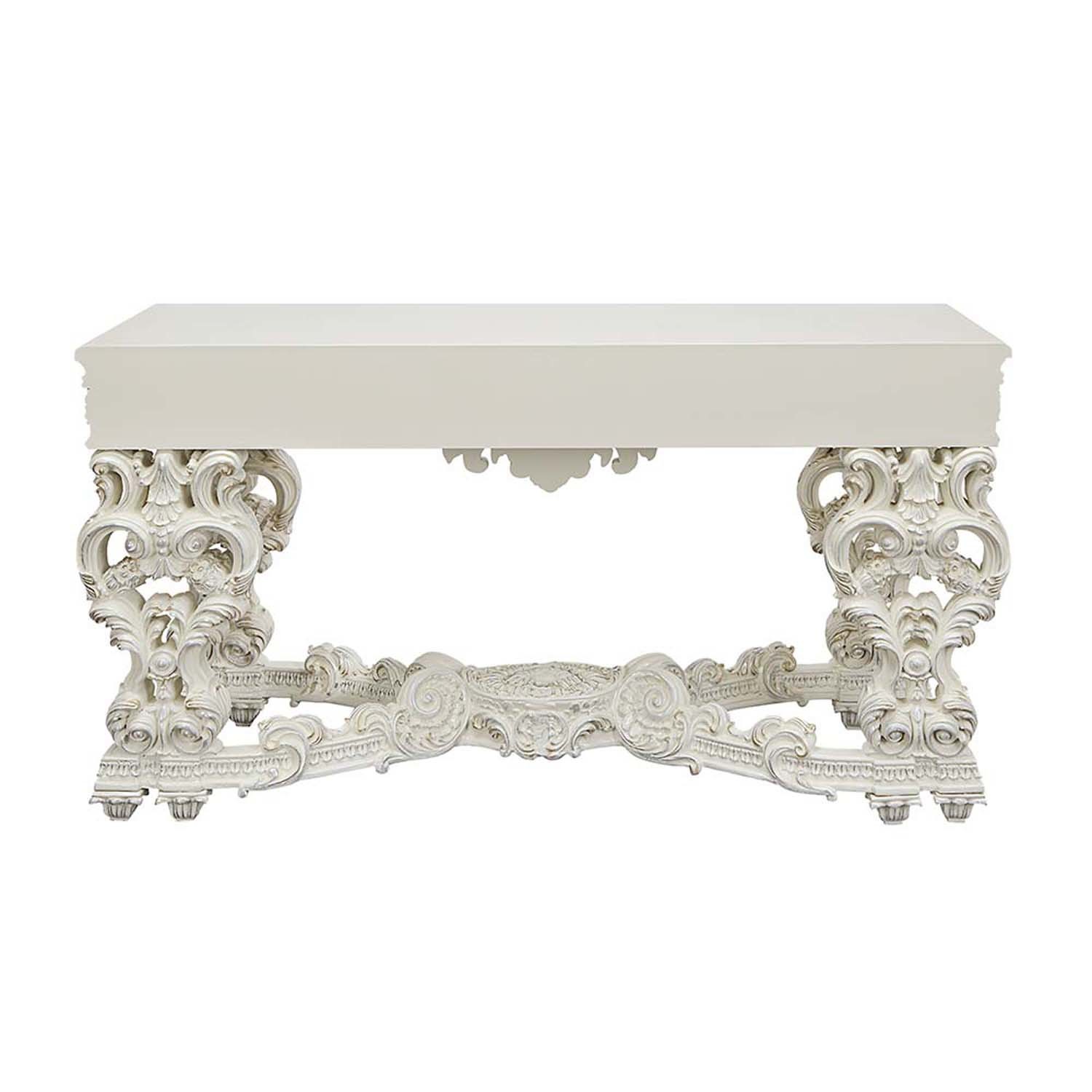 Features: Rectangular Sofa Table Top Thickness: 35 mm Scrolled Leg and Bottom Shelf Intricate Detailing Designed for comfort and everyday functionality. Set Includes: One (1) Sofa Table