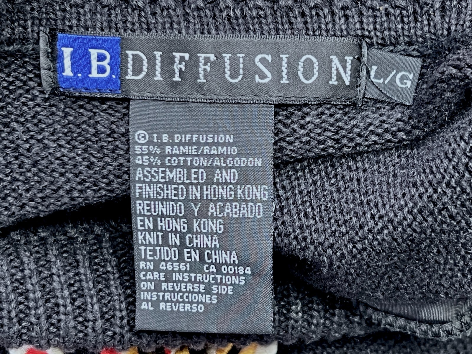 I.B. Diffusion was a flashpoint label of the late 70s?80s, known for flashy knitwear, embellished tops, and oversized silhouettes. Their designs defined the bold, luxe aesthetic of the decade ? bridging glam lounge looks with high-power careerwear.