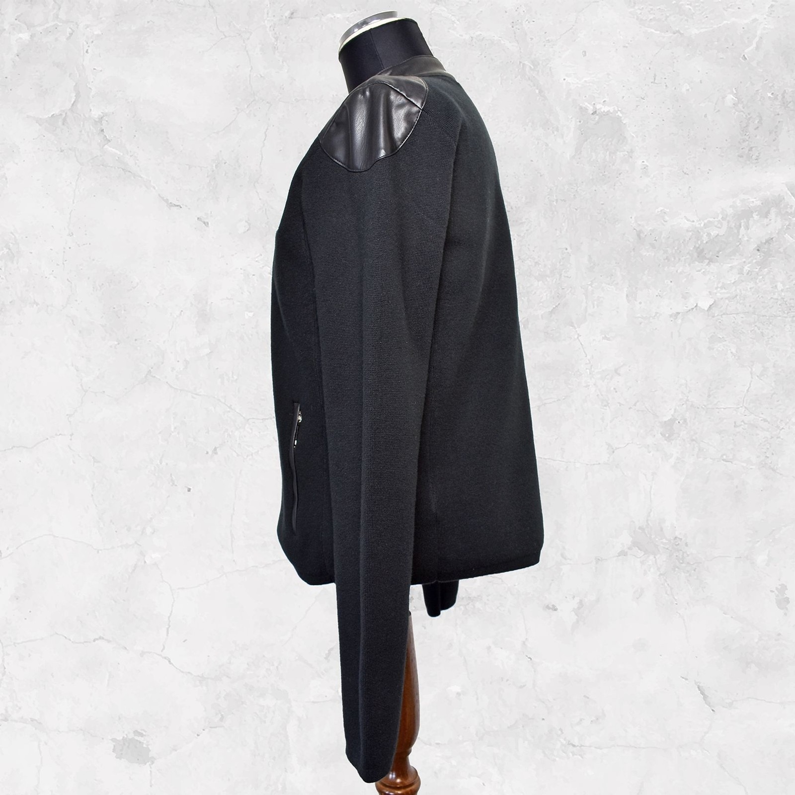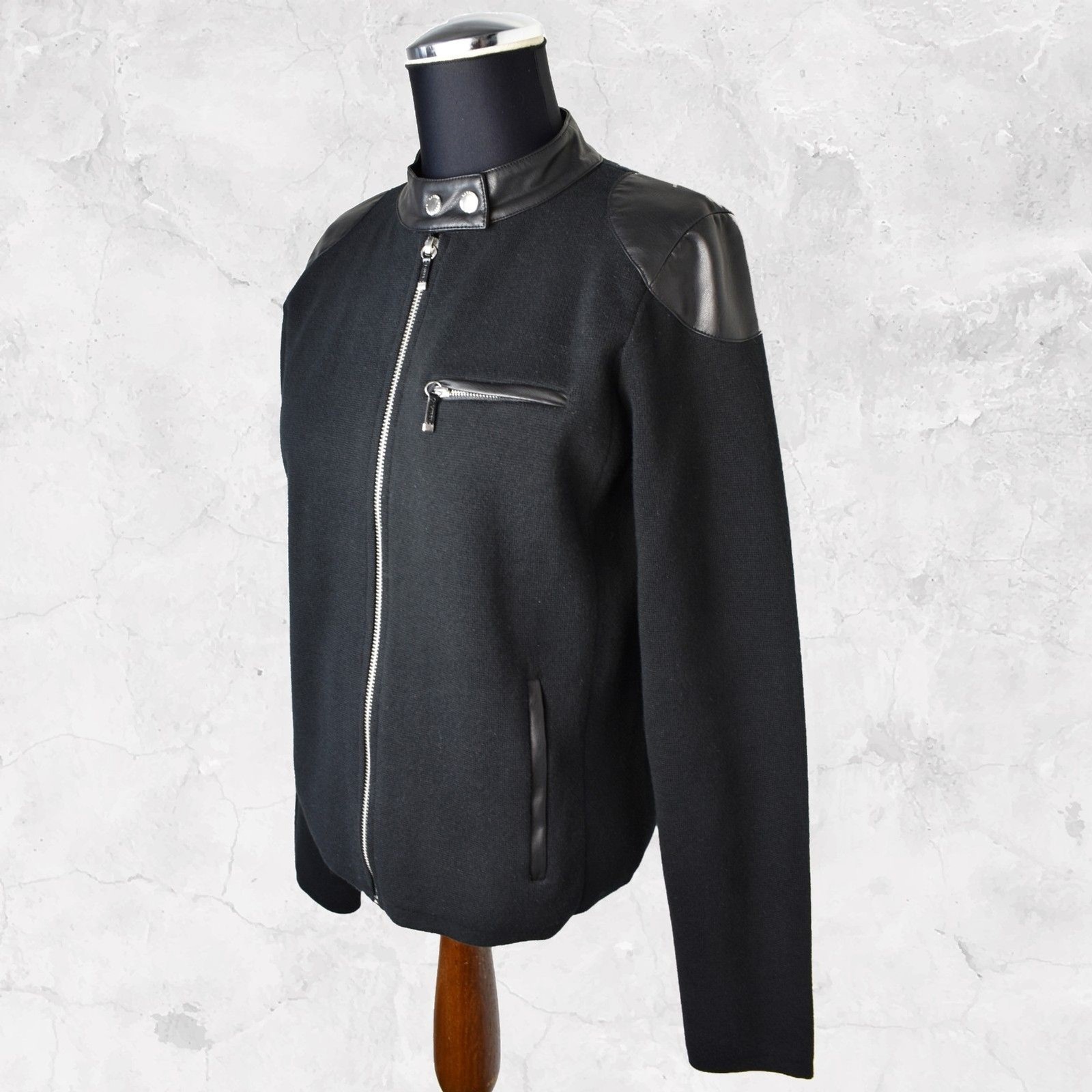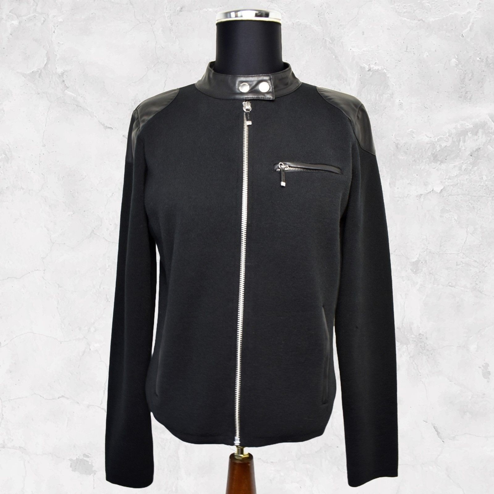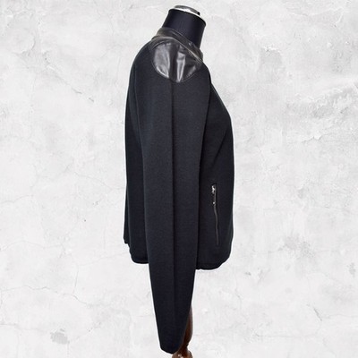 Ralph Lauren Black Moto Jacket Faux Leather Trim Zipper - Women's Size Petite M