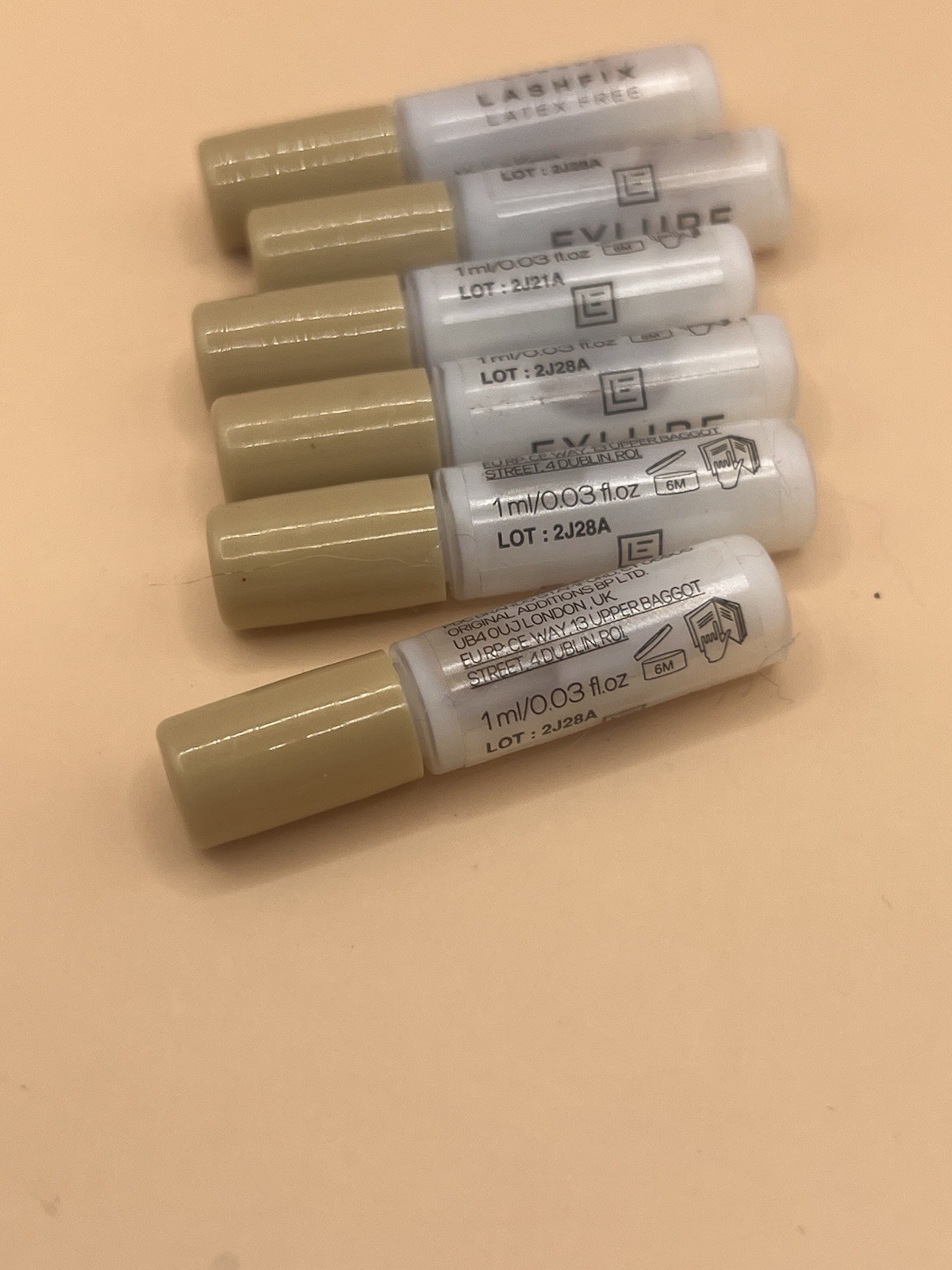 Eylure London Lashfix Latex Free Glue Adhesive Eyelashes Korea 1ml Lot Of 6. Dries clear. New never used came with eyelashes I used myself but I like a different kind of glue so I don?t use this glue.
