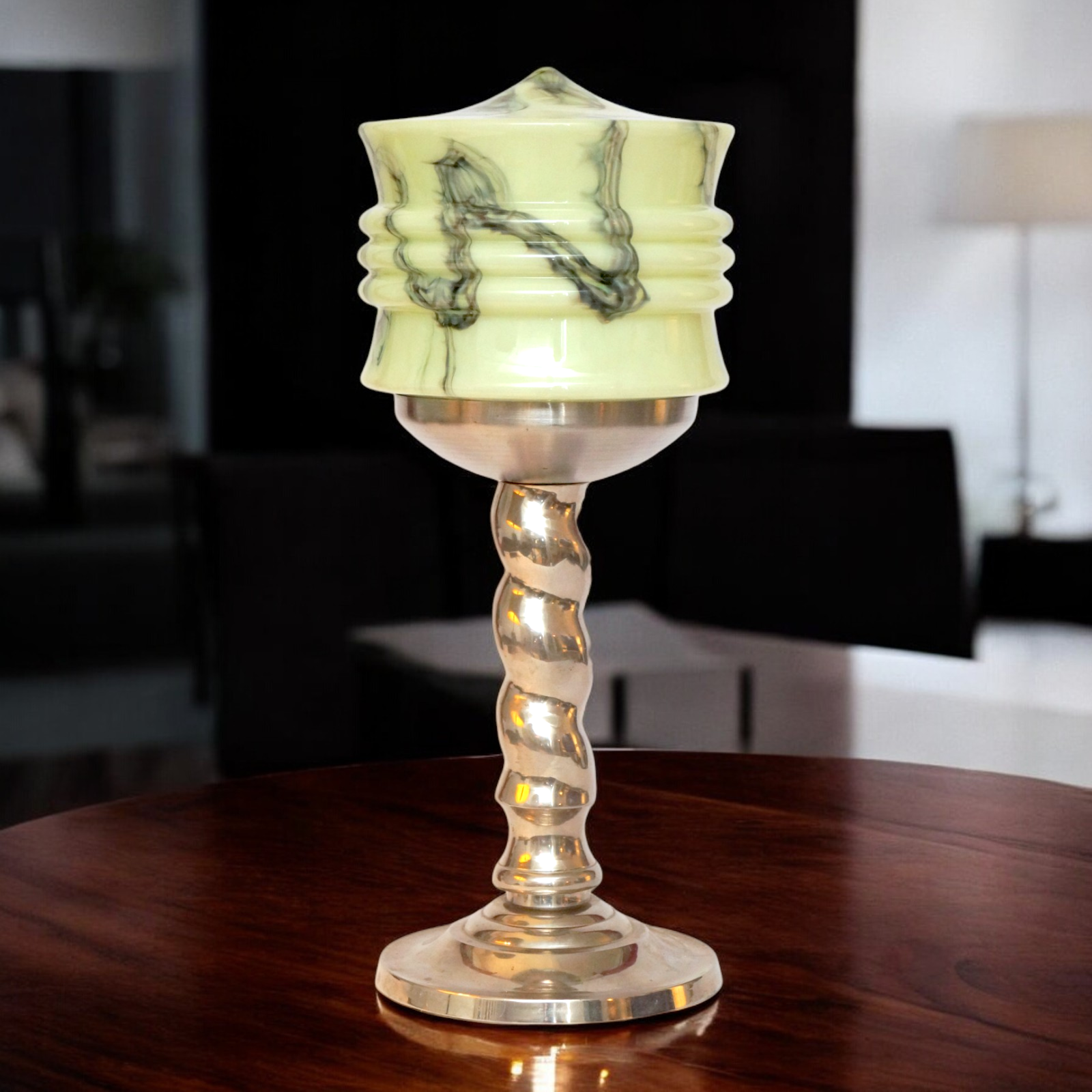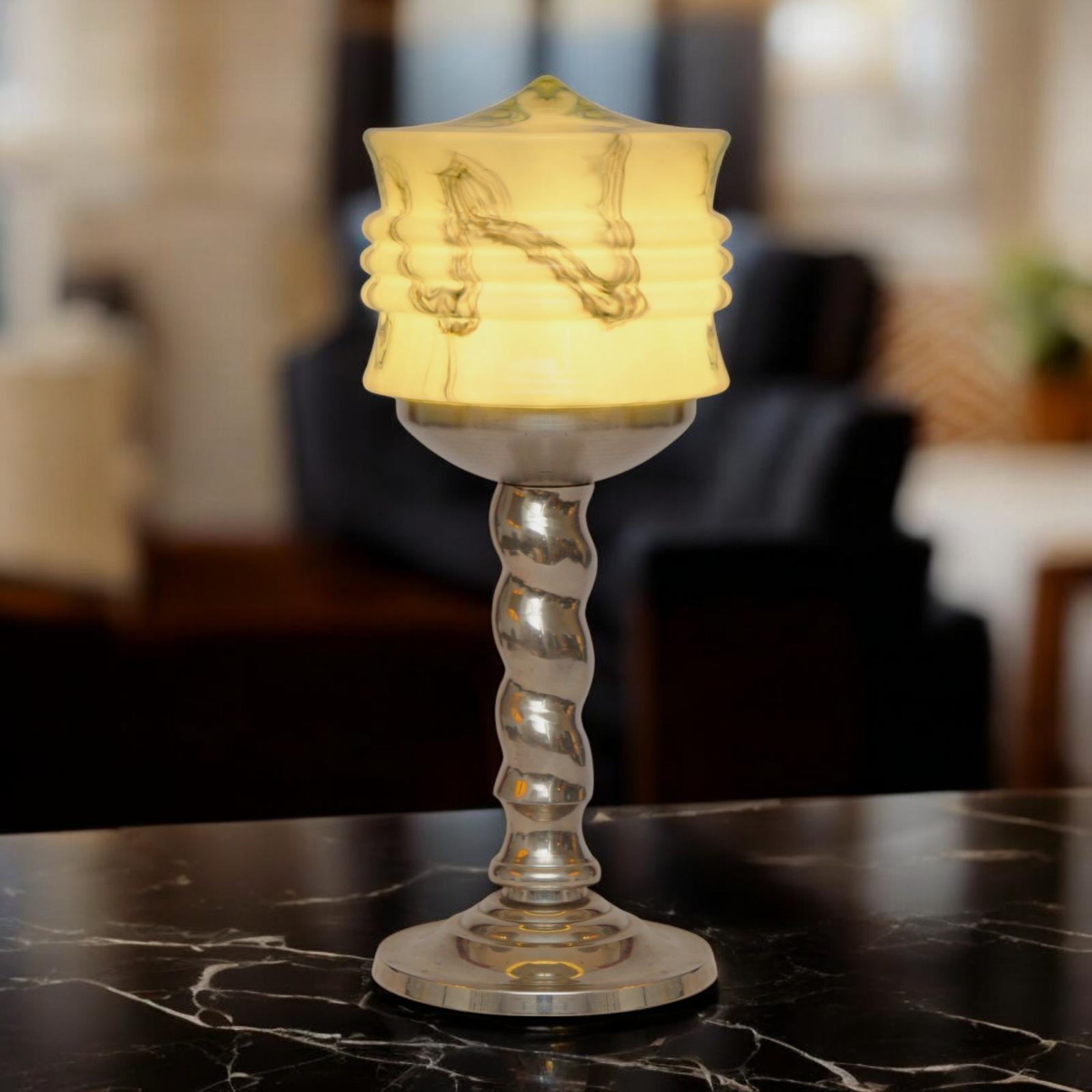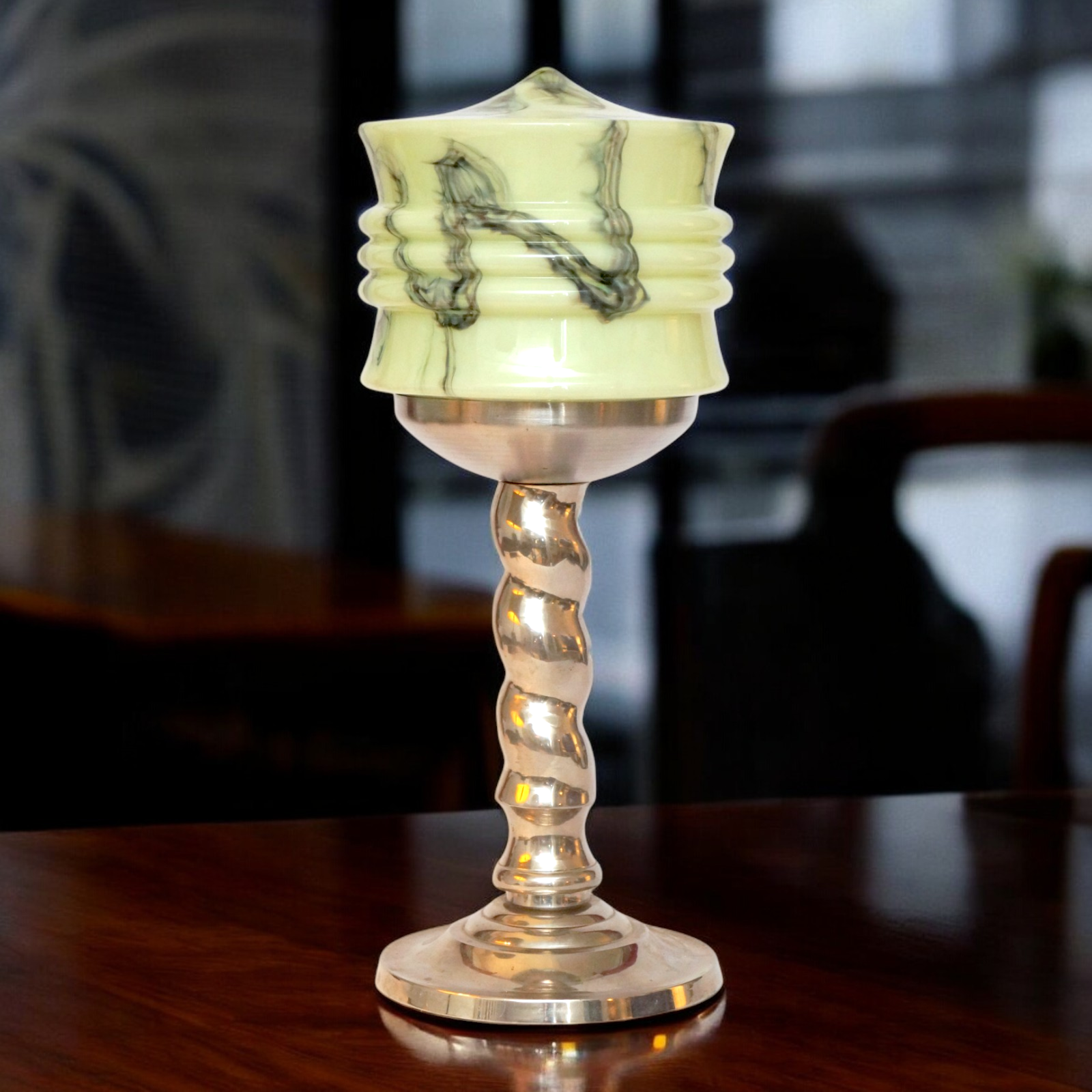 Unique Elegant Art Deco Table Lamp "HELLERHOF" One Of A Kind Galvanized