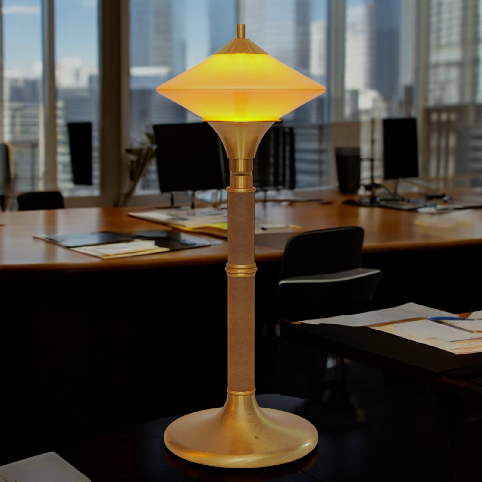 Classic 80s Table Lamp "NIKKEI UFO" Brass Lamp Leather Unique