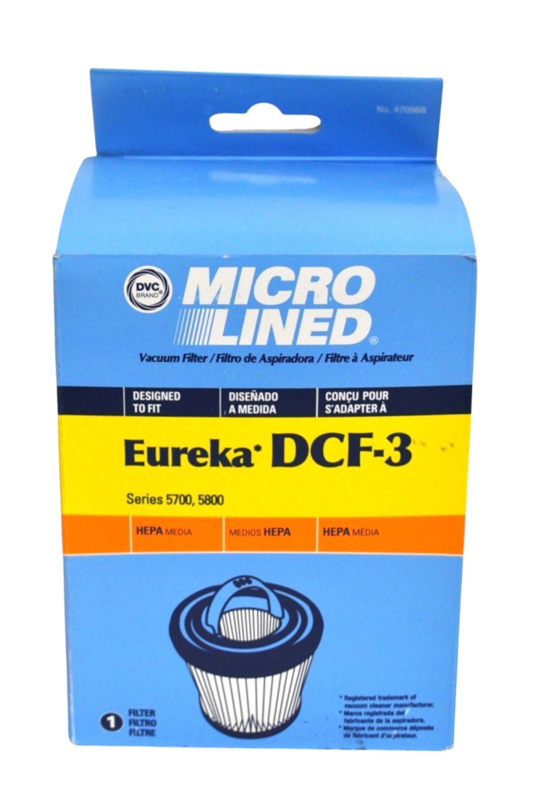 DVC Vacuum Dirt Cup Filter Designed To Fit Eureka Style DCF-3 Vacuums 470988. DVC Eureka/Sanitaire DCF-3 Dirt Cup Filter Assembly. Designed to fit Eureka/Sanitaire 5700, 5800, 5900, SC5700, SC5800 Series Uprights. Generic replacement for OEM part number: 62136A. Package contains 1 filter. Manufacturer Part Number: 470988. ER-1880