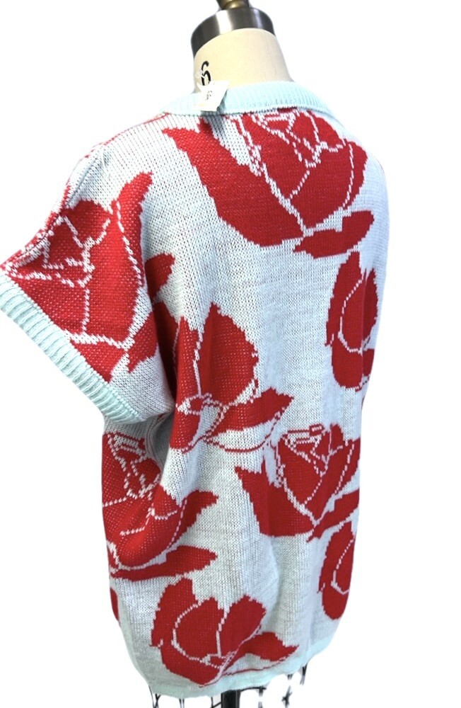 VTG 80s The Globe Blue Red Roses Sweater NWT and 36 similar items