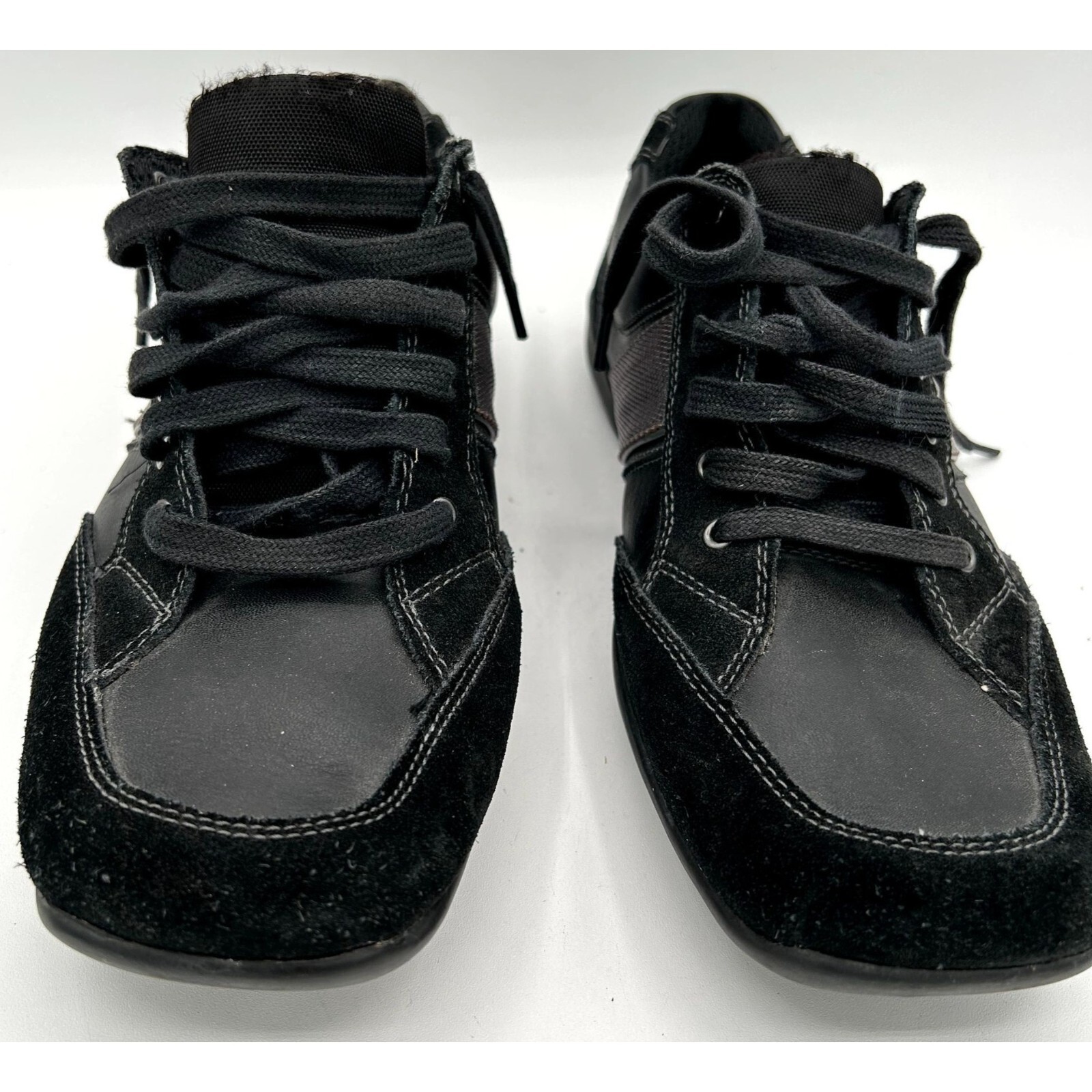 Elevate your casual shoe collection with these stylish Calvin Klein Barber Lace-Up shoes in Black/Gray. The square toe design and suede upper material offer a trendy and sleek look perfect for any occasion. The rubber outsole provides durable traction and stability, while the lace-up closure ensures a secure and comfortable fit.