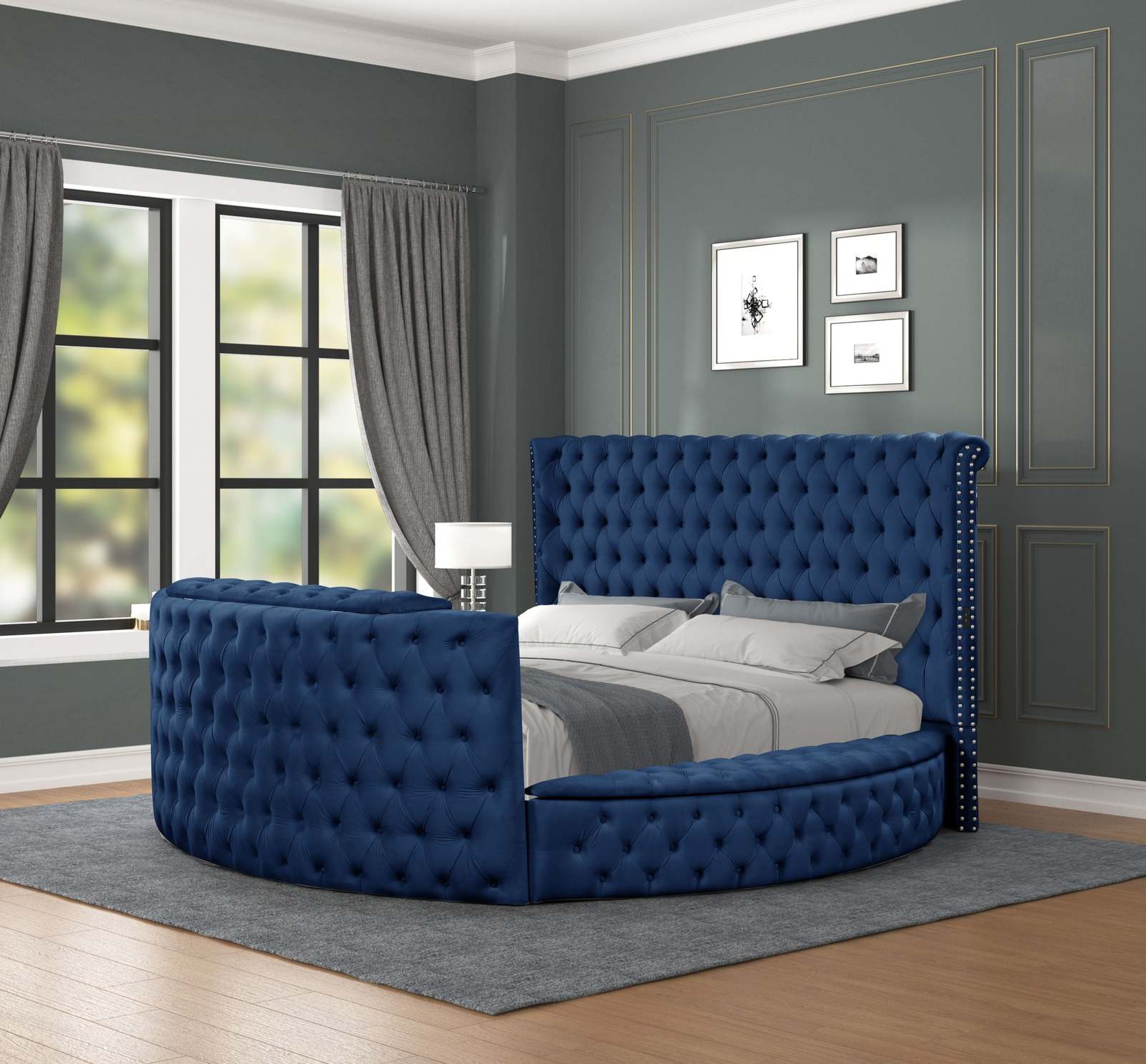 Modern Style Crystal Tufted Queen Bed with Blue Solid Wood Frame