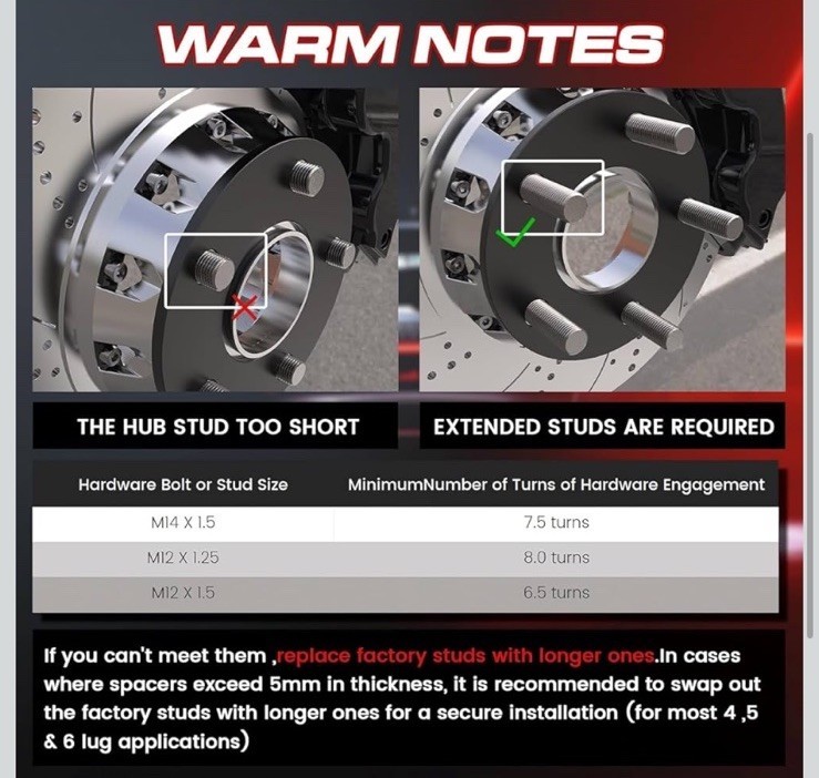 High Grade T6 Aluminum w/ Class 10.9 Carbon steel wheel studs |