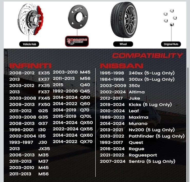 (2) 12mm Wheel Spacers 5x114.3 For 240SX 350Z 370Z G35 G37 Q50 Altima