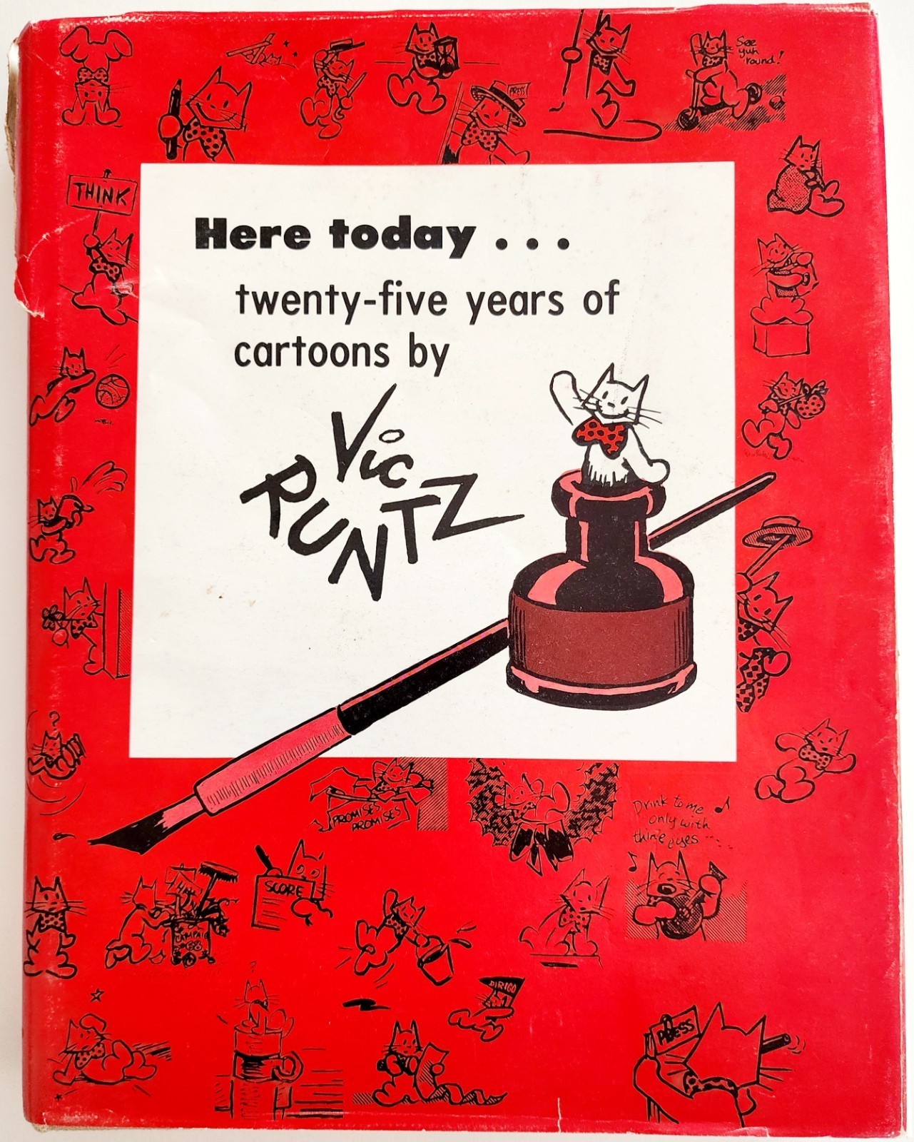 1984 Vic Runtz SIGNED Here Today Cartoon Art Book HC 1st Edition w/ Drawing HBS