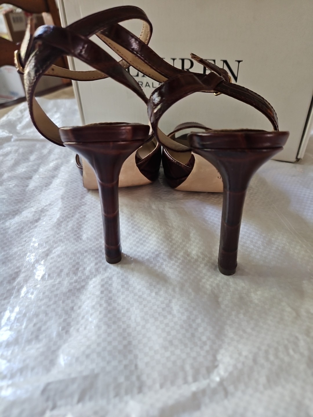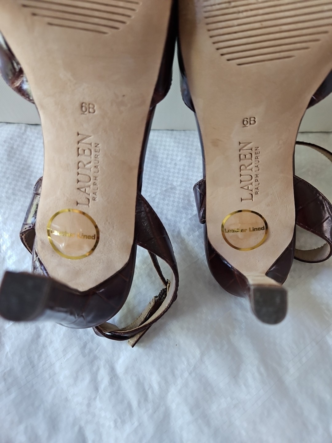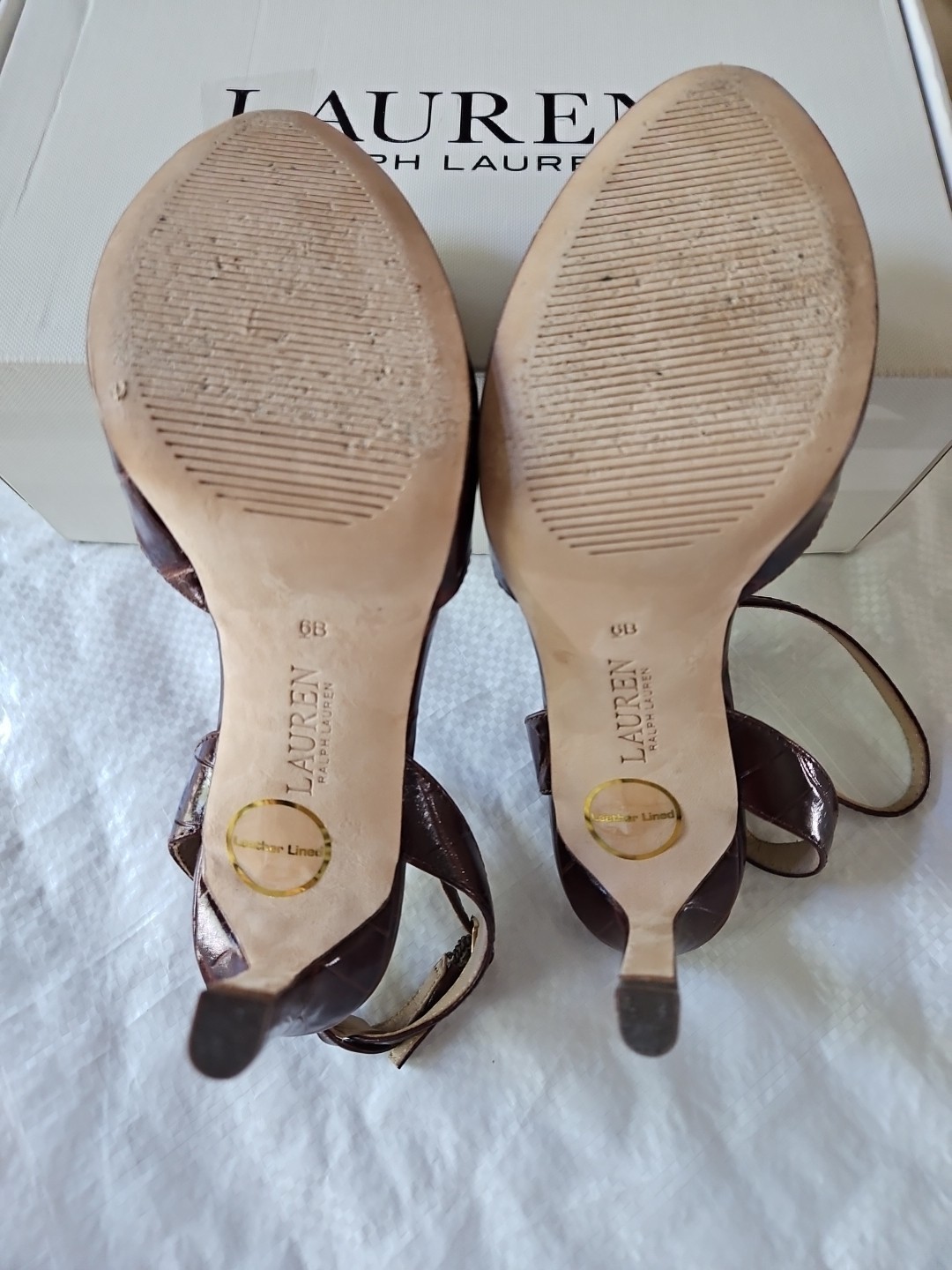 Lauren Ralph Lauren Madelaine Nappa Leather Sandal Black 6 B (M) $185 *Read*