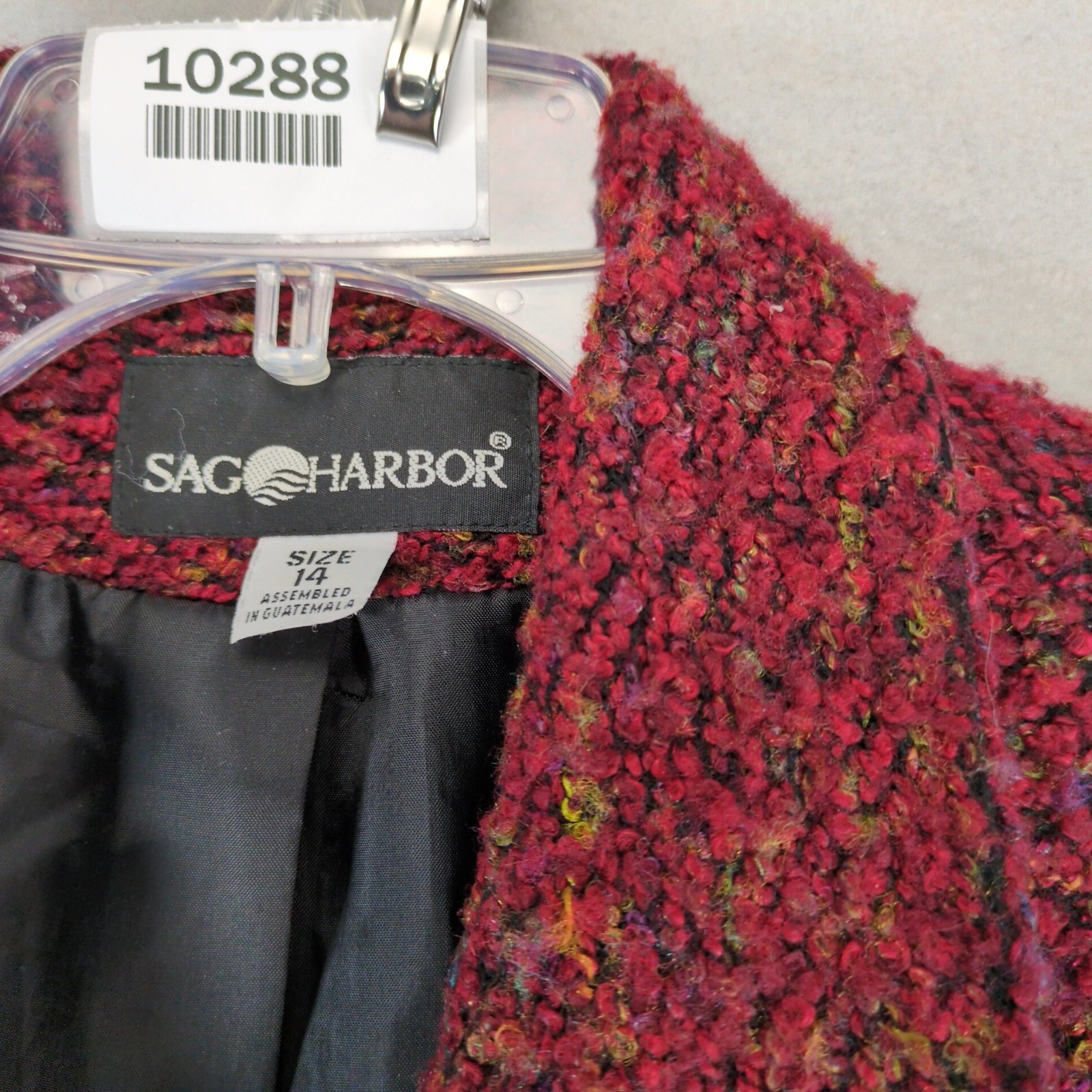 Vtg Sag Harbor Burgundy Tweed Pea Coat Women's 14 Lined 4-Button Academia Preppy