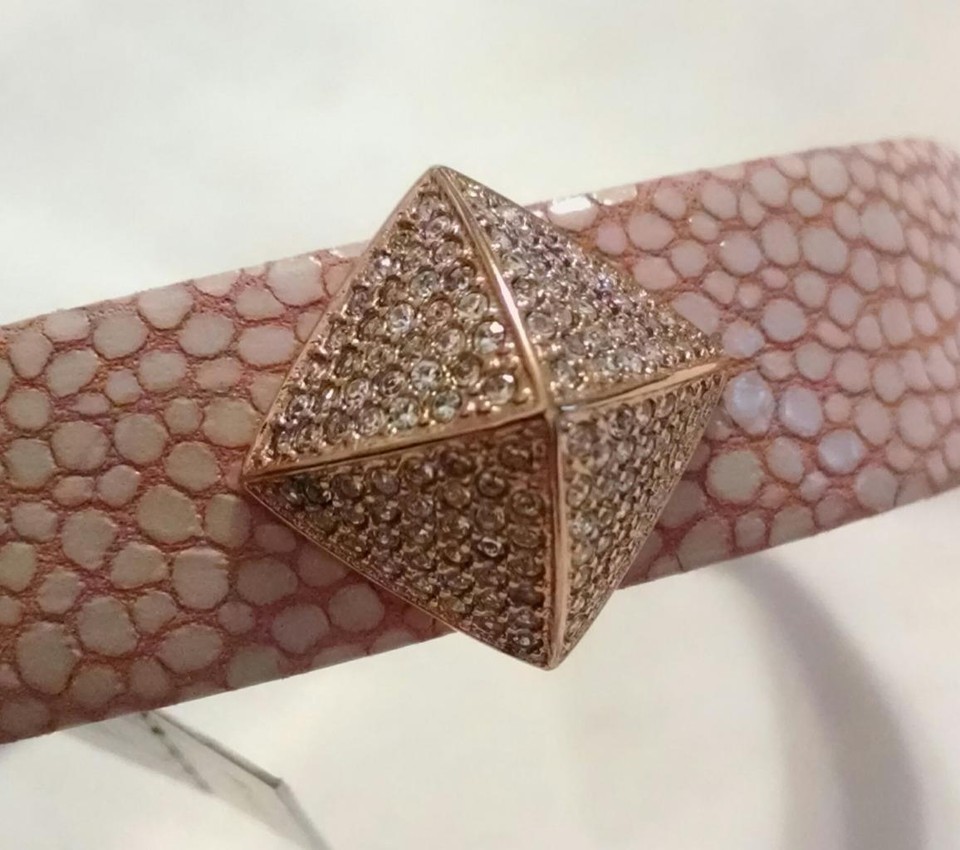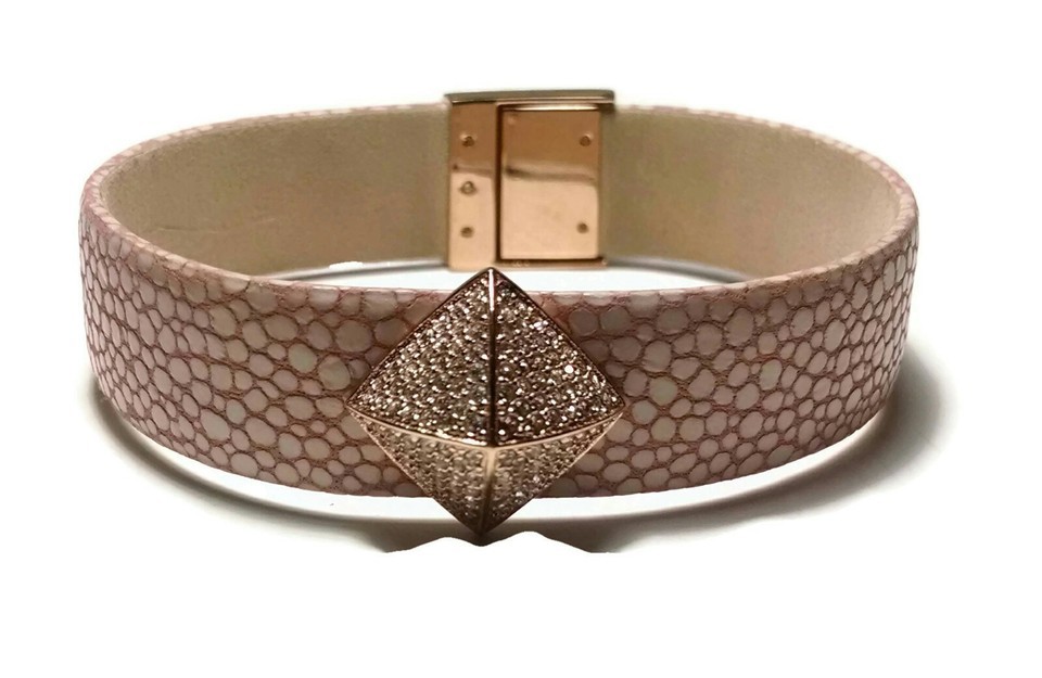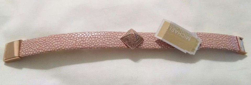 NWT $125 MICHAEL KORS Pink White Leather Gold Rhinestone Snap Bracelet