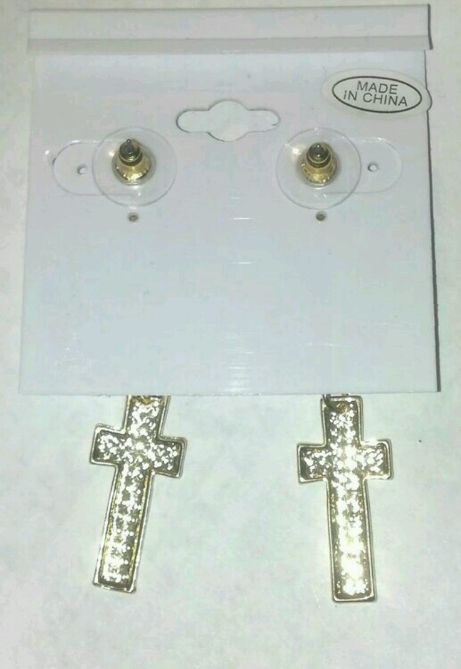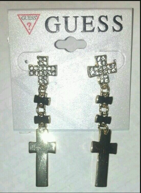 NEW GUESS Rhinestone CROSS Gold Plated Designer Earrings Orig $30