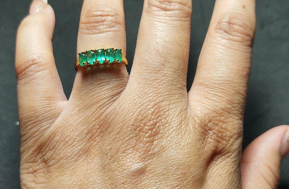 NWT Green Onyx 1.5 Carat Ct 5 Stone 14K Gold Sterling Silver 925 Size 7 Ring