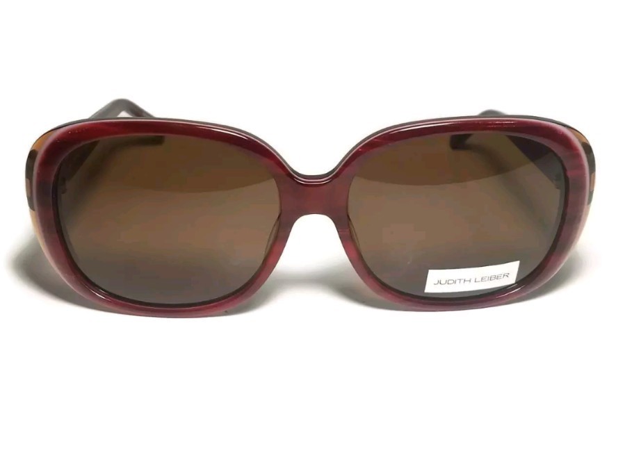 NEW JUDITH LEIBER Jewel Burgundy Gold Gunmetal Sunglasses + Case JL5007