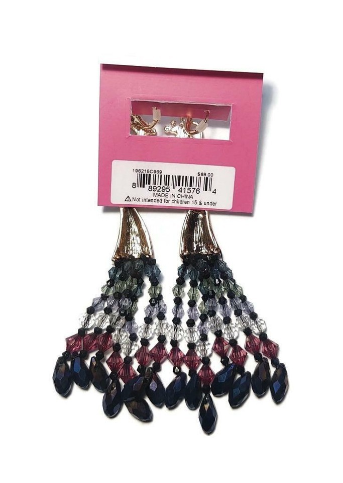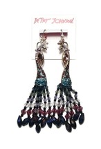 NWT $68 BETSEY JOHNSON Black Peacock Beaded Rhinestone Chandelier Earrings