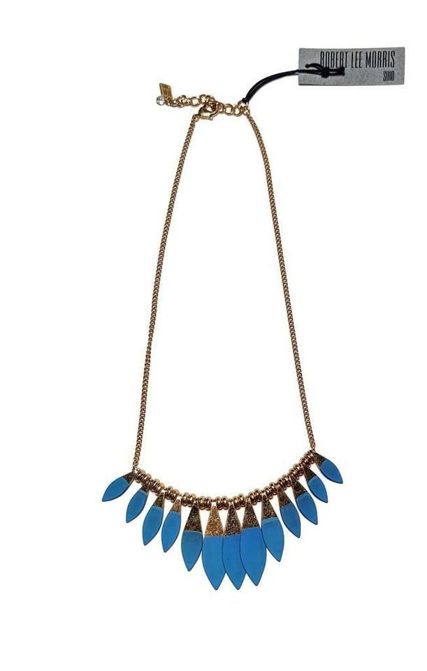 NWT $95 ROBERT LEE SOHO Gold Tone Tribal Turquoise Necklace