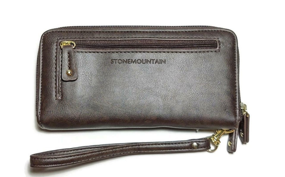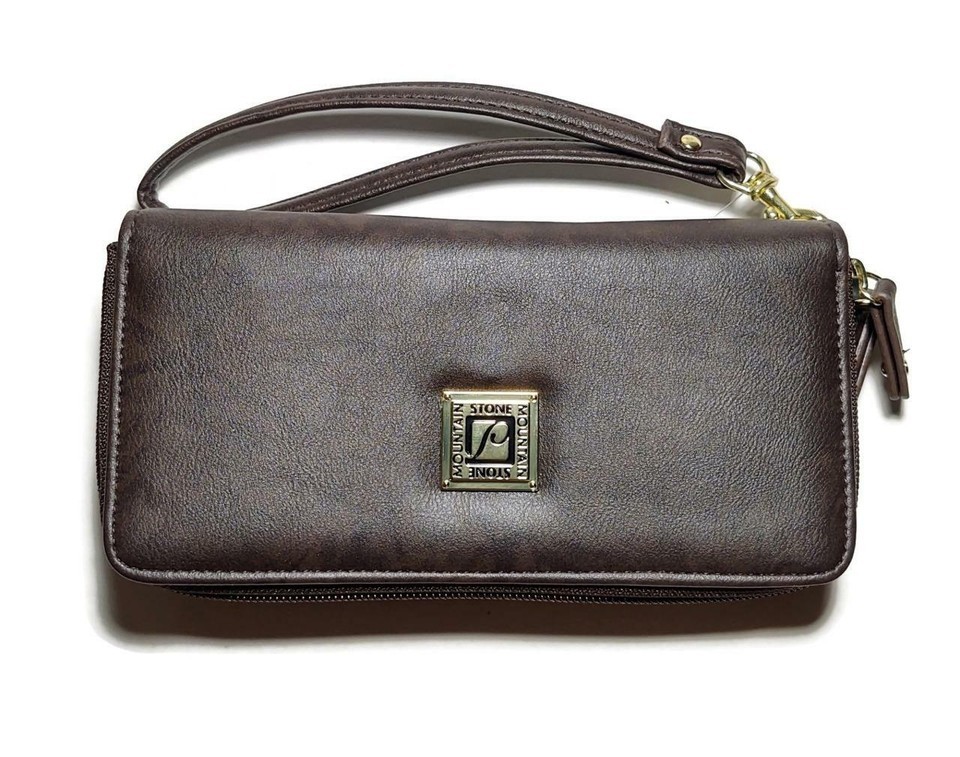 NWT $68 STONE MOUNTAIN Leather Matte Brown Crunch SLG Leather Wristlet Wallet