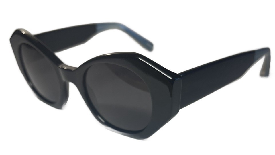 Designer SunglassesBlack LensesBlack Plastic FramesLight Blue Temple Legs46-22-145Generic Case Included-(not Elizabeth and James)