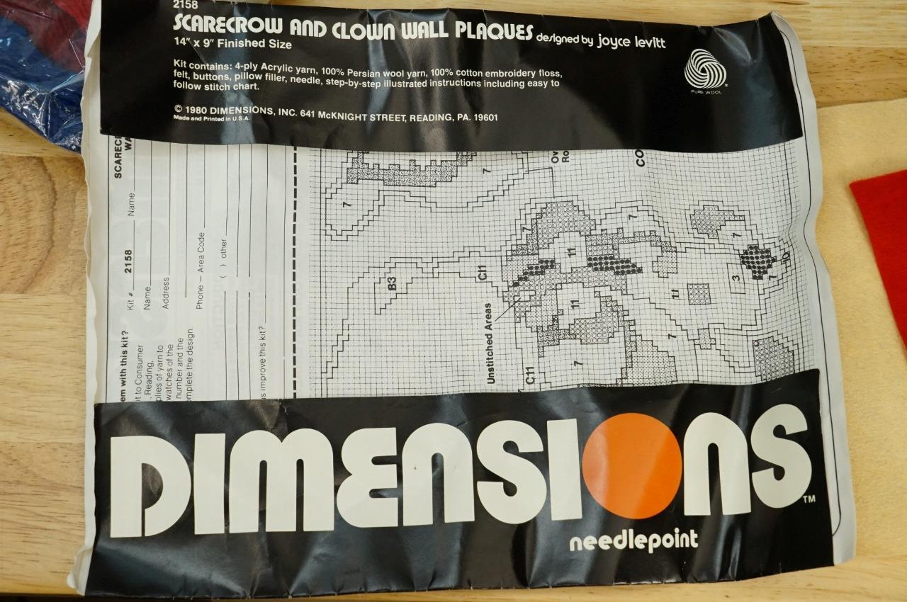 Dimensions Needlepoint Plastic Canvas CLOWN Wall Art Pattern Kit 2158. ?Clown pattern and materials present other than the plastic canvas and needle. Scarecrow pattern only. No smoke or pet odors.